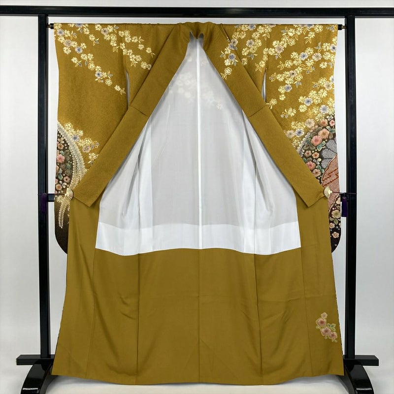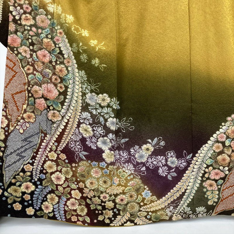 (中古) 振袖 黄色 山吹色 フォーマル 金通し 染め 絞り 辻が花 袷【身丈】160cm【裄丈】64.5cm