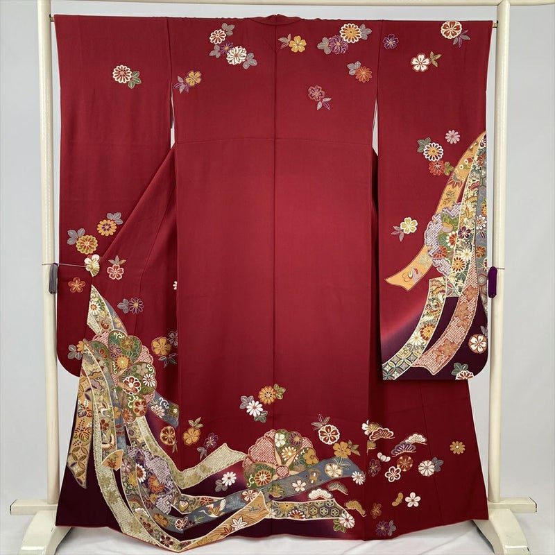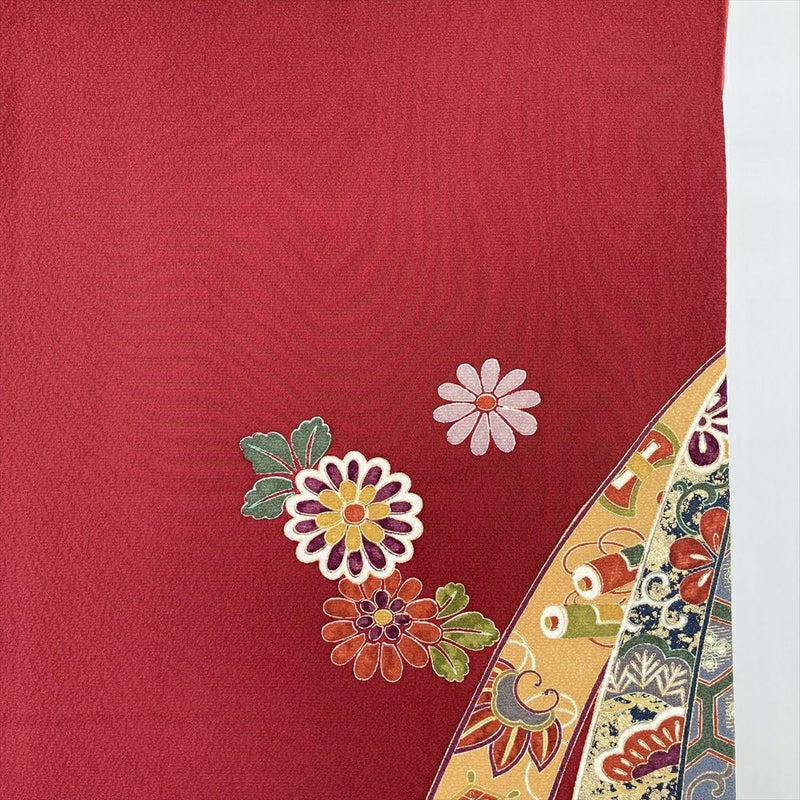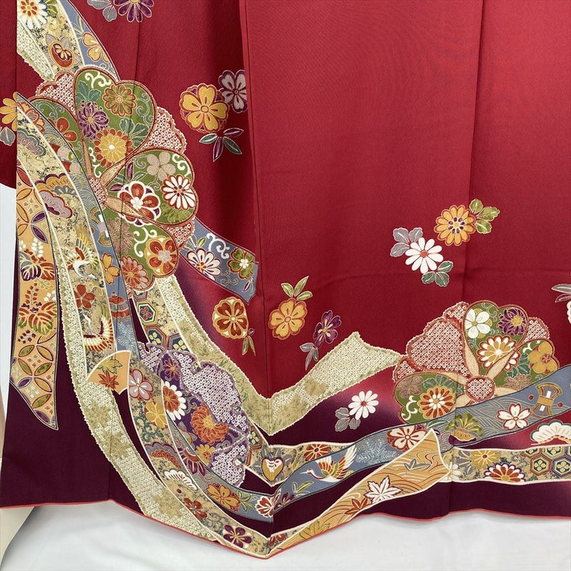 (中古) 振袖 赤 フォーマル 熨斗 花 袷 絹 【身丈】157.5cm【裄丈】66.5cm