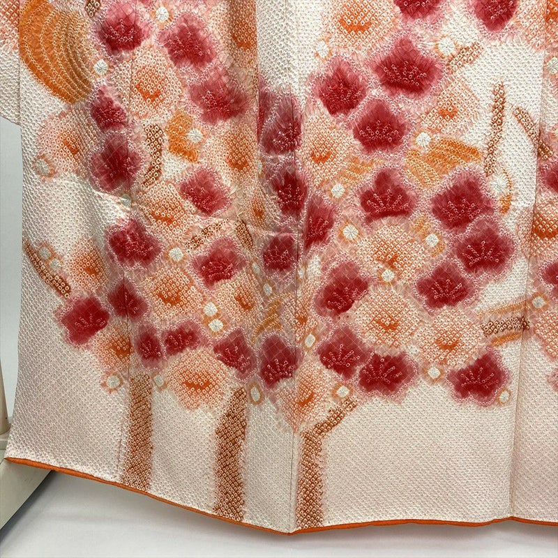 (中古) 振袖 薄コーラルピンク フォーマル 梅 流水 袷 絹 【身丈】158cm【裄丈】67cm