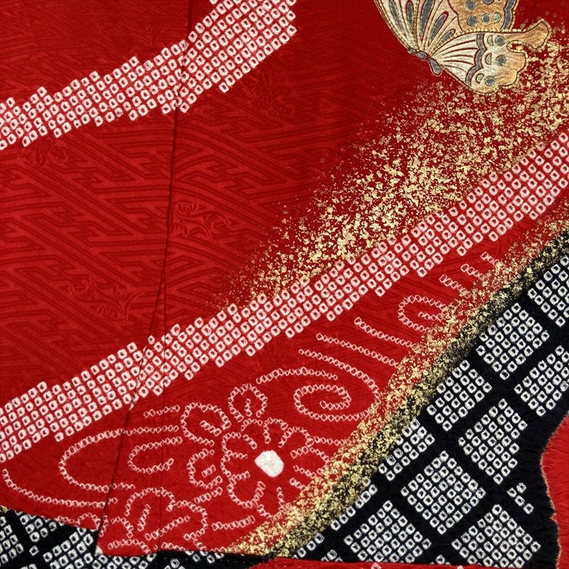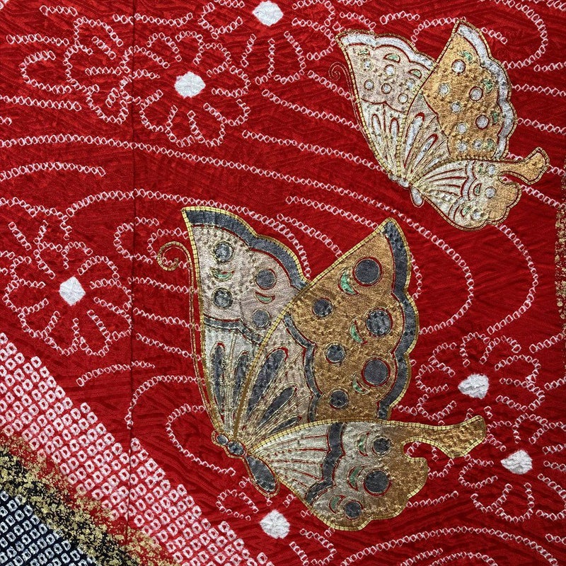艶やかな赤色の世界には、優雅に舞う蝶の金彩が煌めき、ハレの日にふさわしい華やかさを添えます。