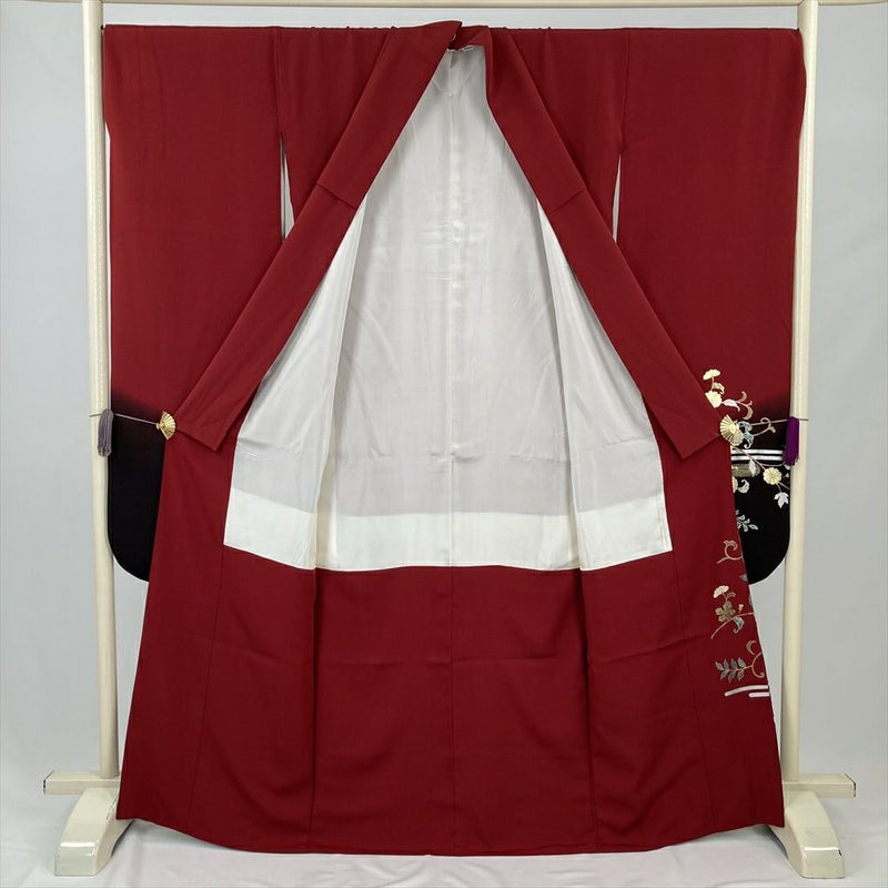 (中古) 振袖 赤 フォーマル 鳳凰 菊唐草 袷 絹 【身丈】161cm【裄丈】70.5cm