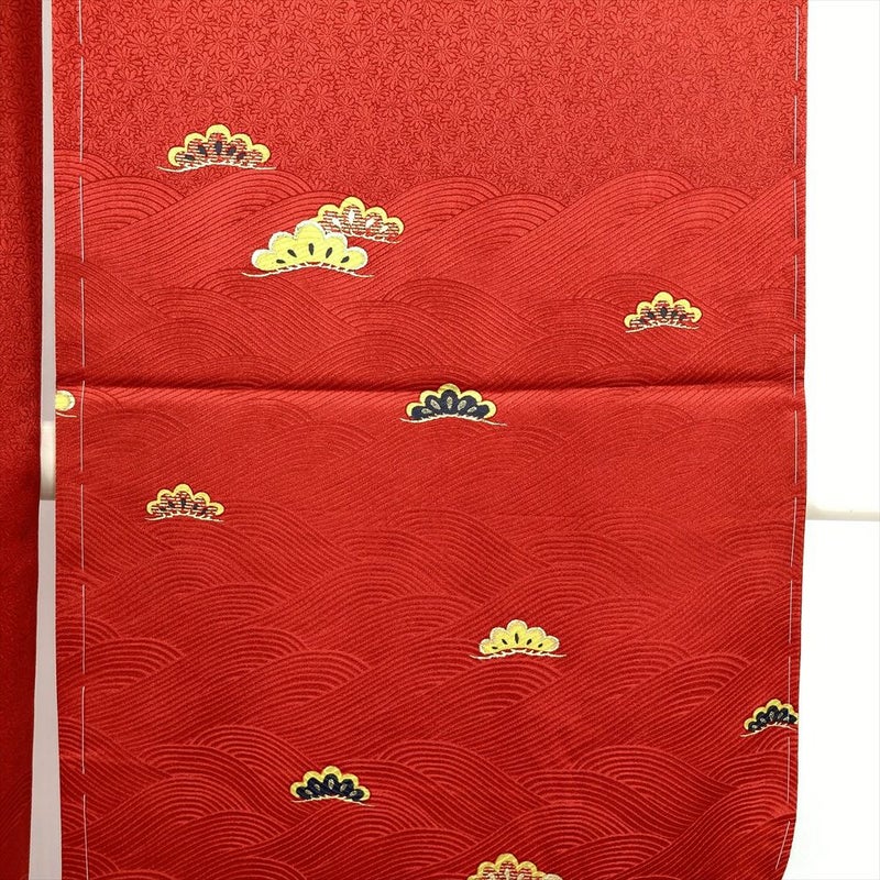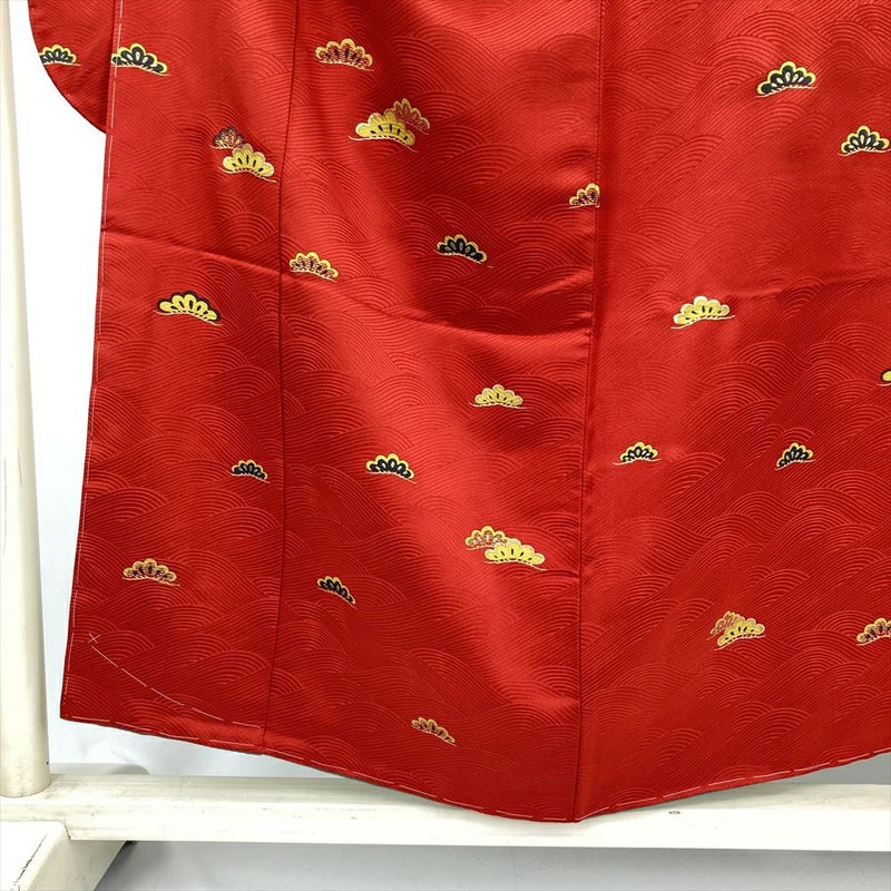 (中古) 振袖 赤 フォーマル 波 松 袷 絹【身丈】148.5cm【裄丈】65cm