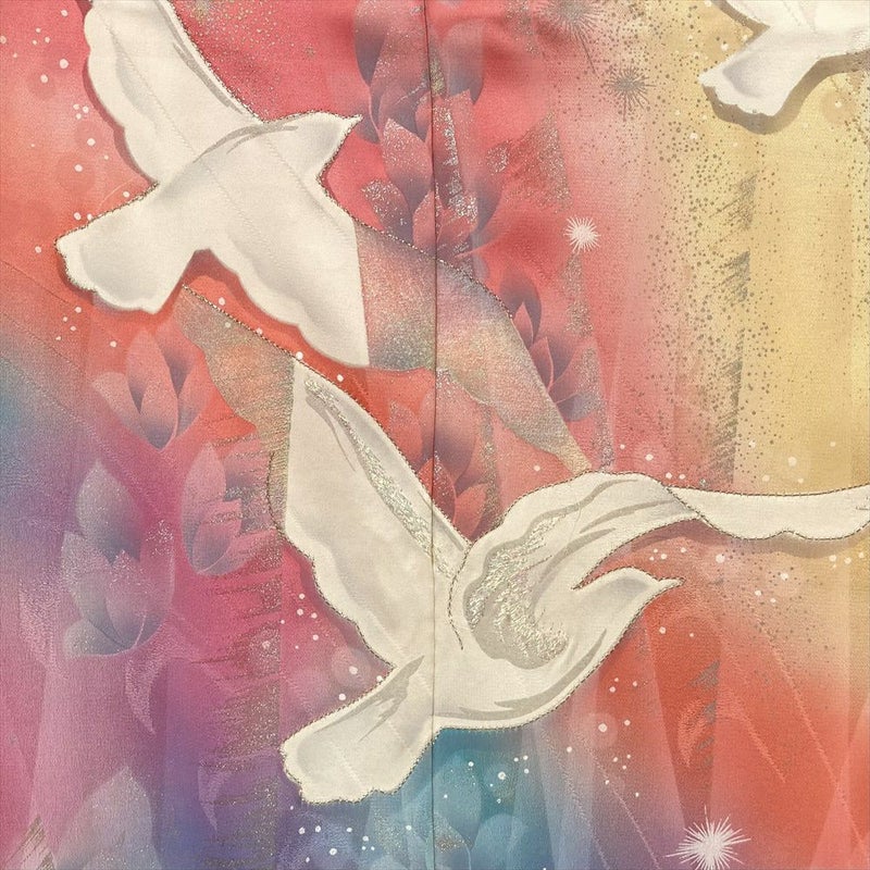 【色柄】ピンク フォーマル 白い鳥 メルヘン 虹色 ラメ