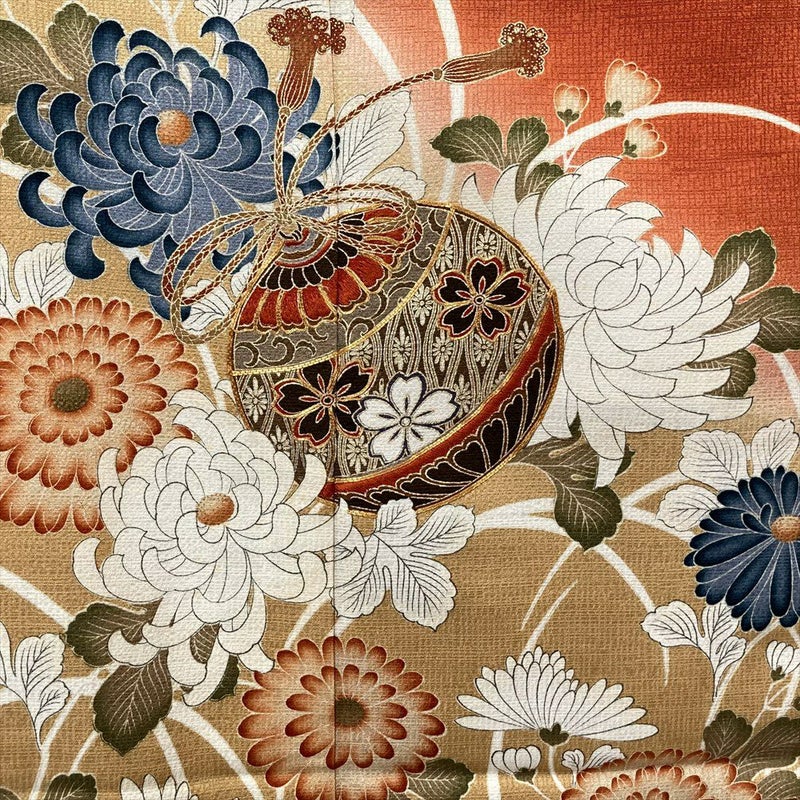 鈴は清らかさ、菊は長寿と高貴、蝶は変化と希望を象徴する吉祥文様として知られ、晴れの日にふさわしい意味が込められています。