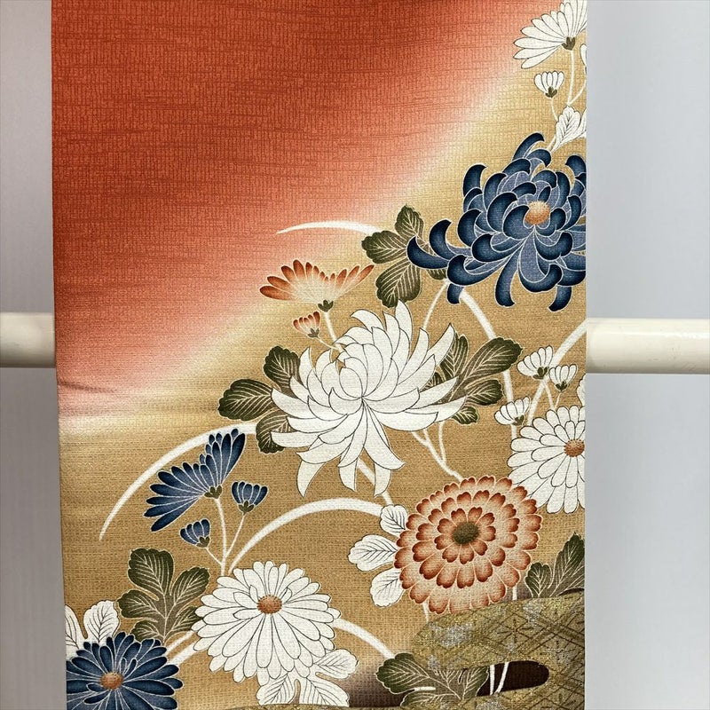 【色柄】赤茶 オレンジ フォーマル 鈴 菊 エ霞 蝶