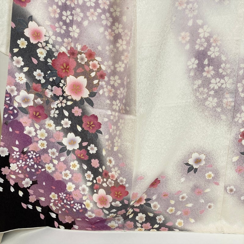 (中古) 振袖 白 フォーマル 桜尽くし 袷 絹 【身丈】161cm【裄丈】69.5cm