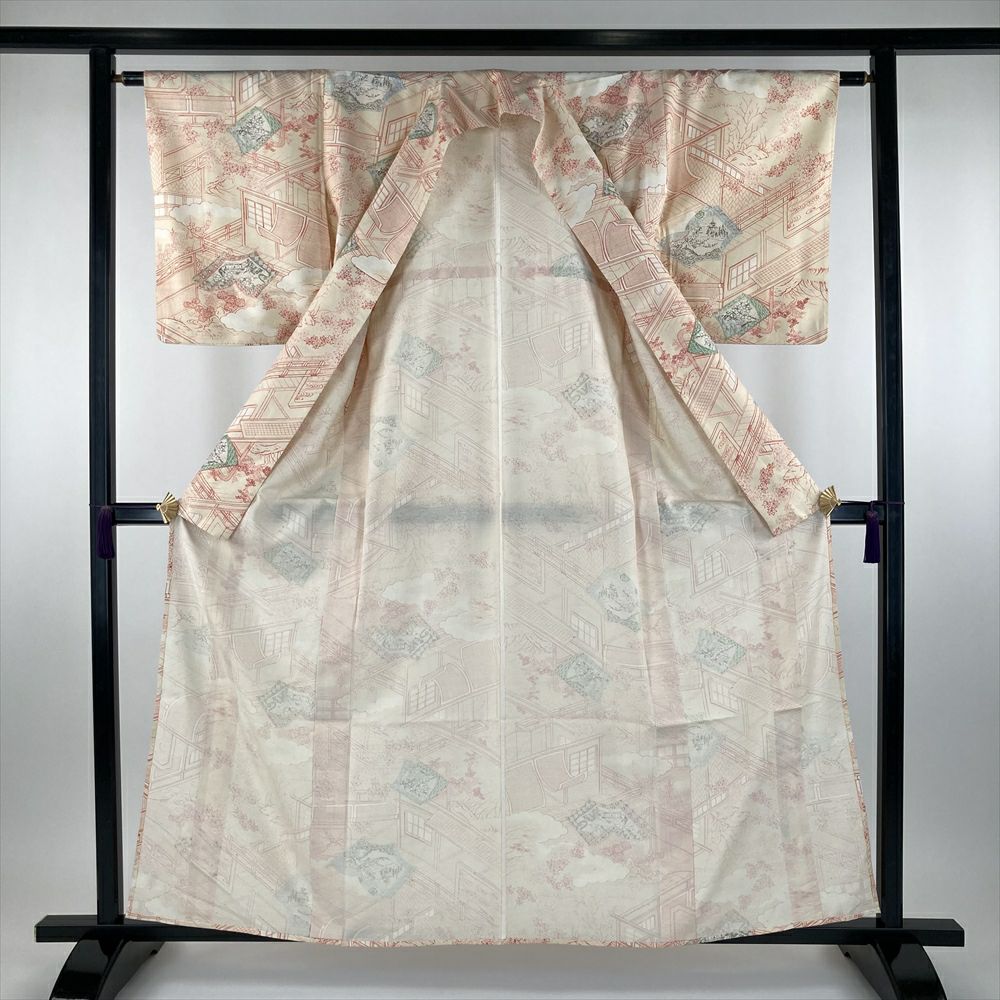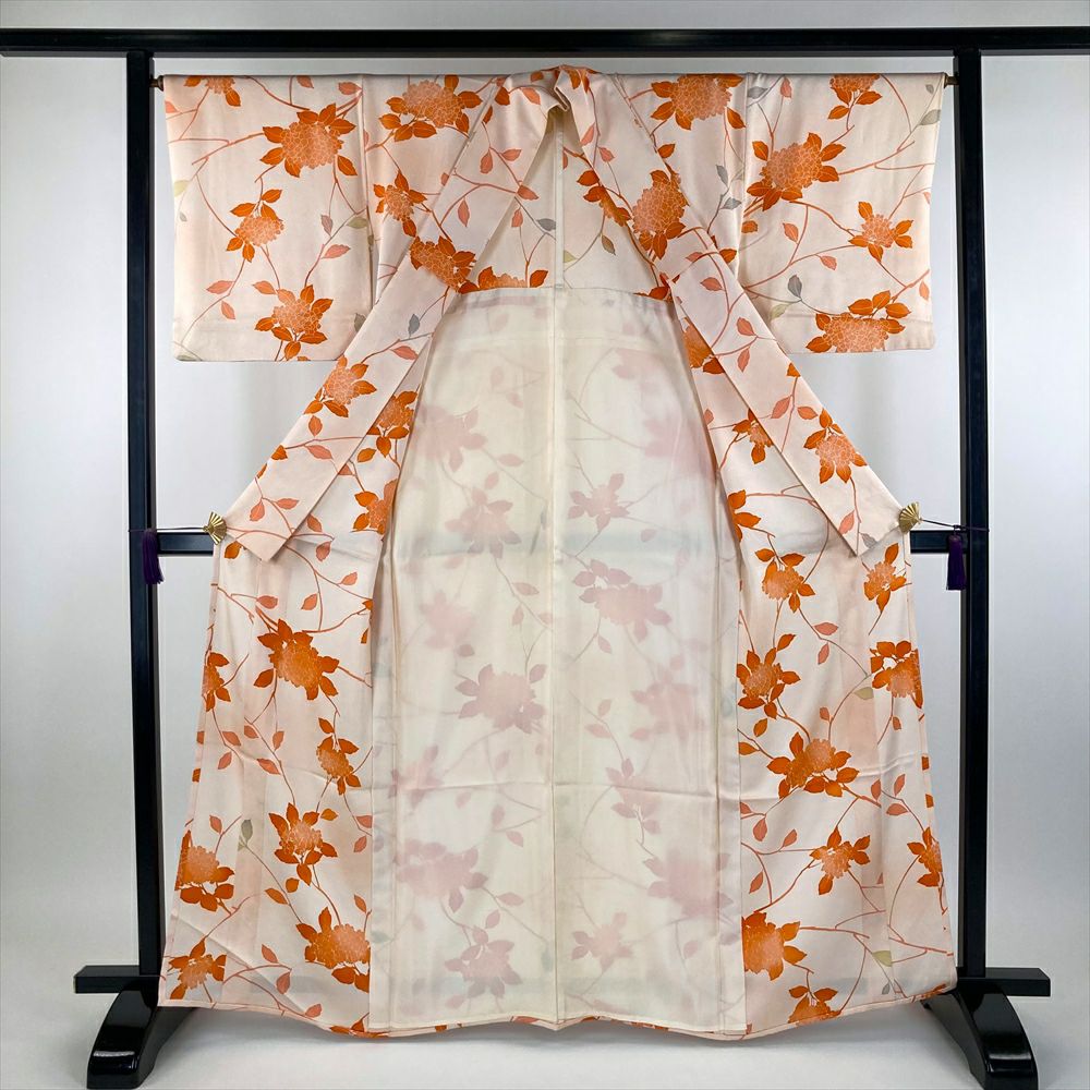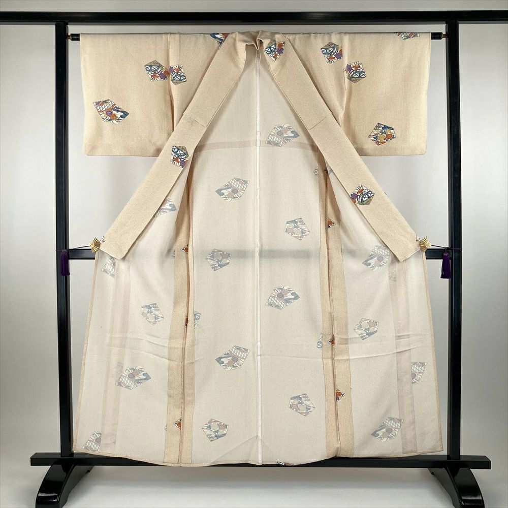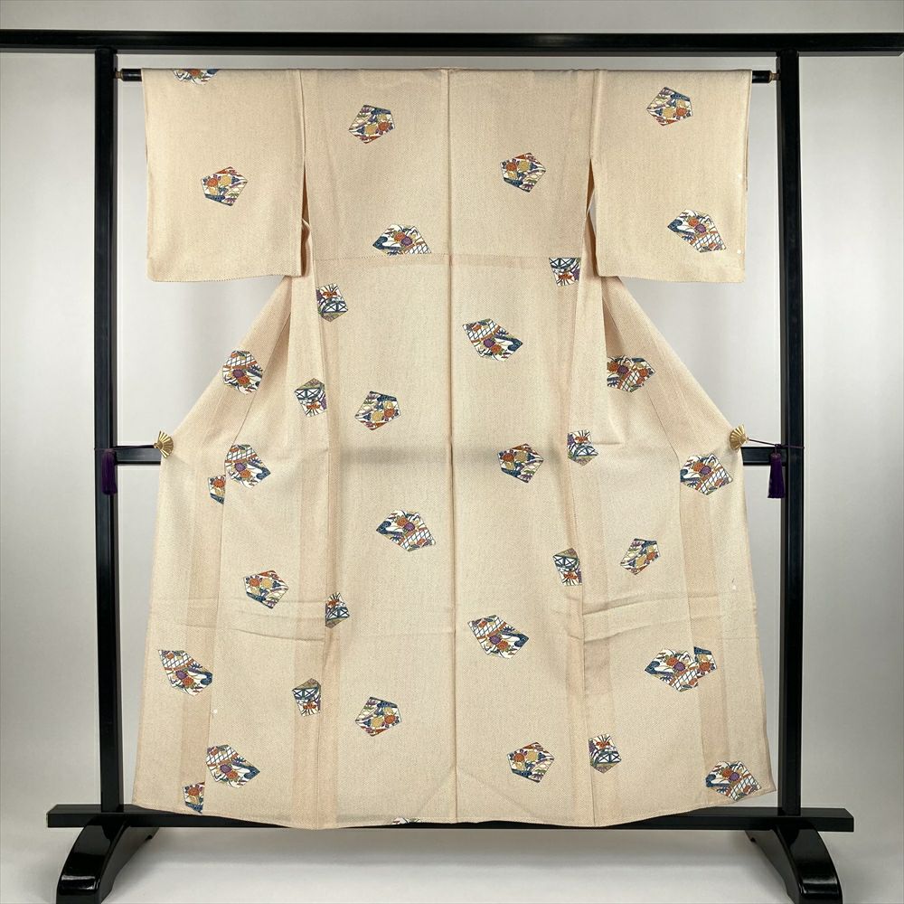 他の画像を見る (中古) 単衣小紋 橙色 青緑色 紫色 オレンジ色 マルチカラー カジュアル 地紋織り 染め 抽象柄 ひとえ SS 【身丈】150.5cm【裄丈】65cm ¥ 16,500 税込 お気に入りに登録する