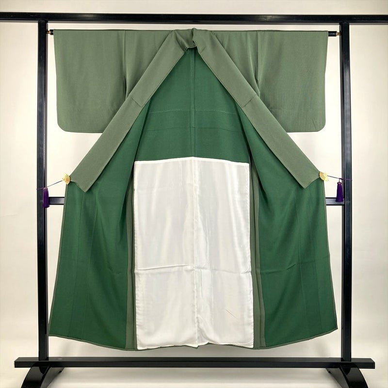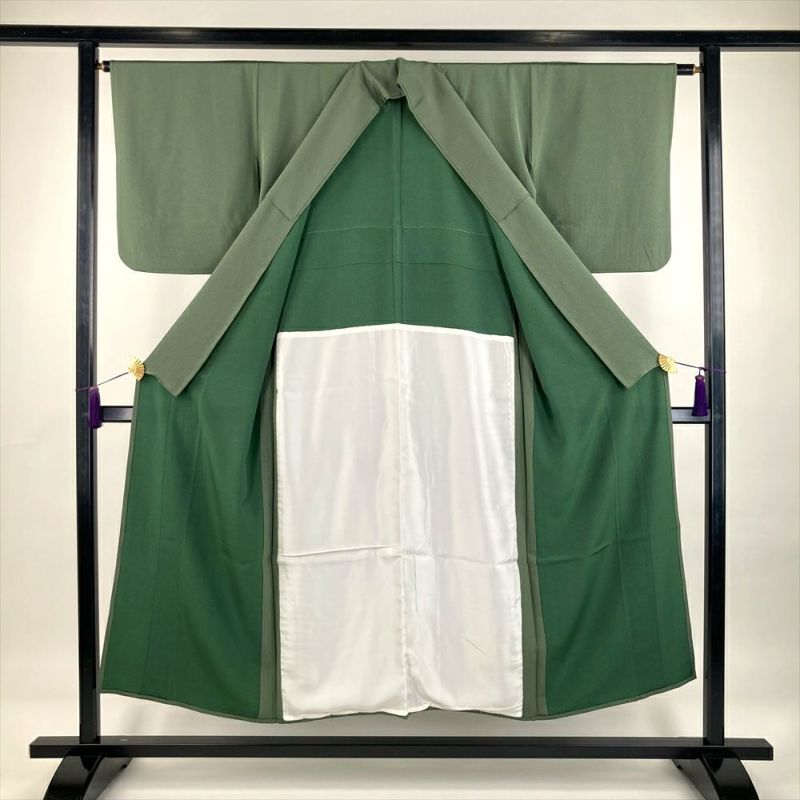 (中古)単衣江戸小紋 緑 カジュアル 万筋 ひとえ SS【身丈】146.5cm【裄丈】64.5cm