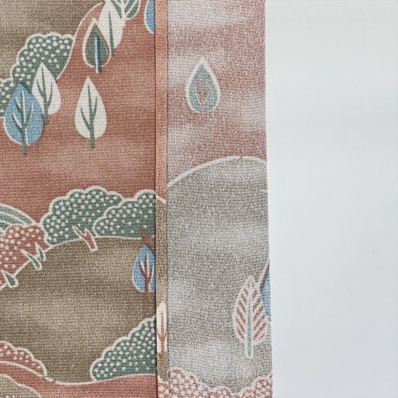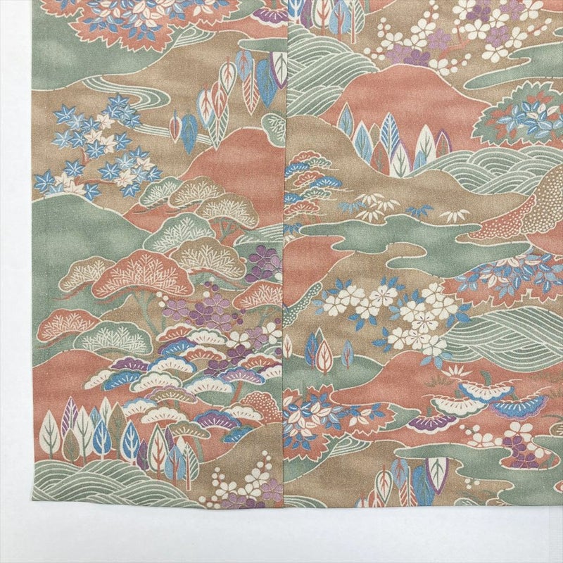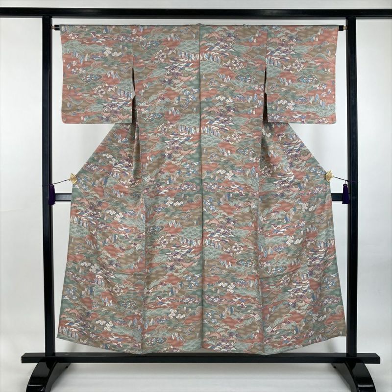 (中古) 単衣小紋 マルチカラー カジュアル ちりめん 山並み 流水 松 梅 紅葉 ひとえ SS【身丈】148.5cm【裄丈】63.5cm