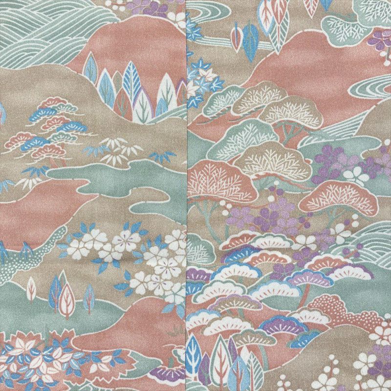 【色柄】マルチカラー カジュアル ちりめん 山並み 流水 松 梅 紅葉