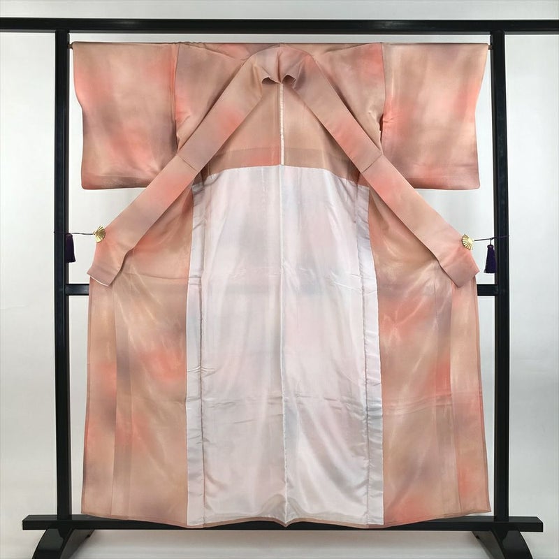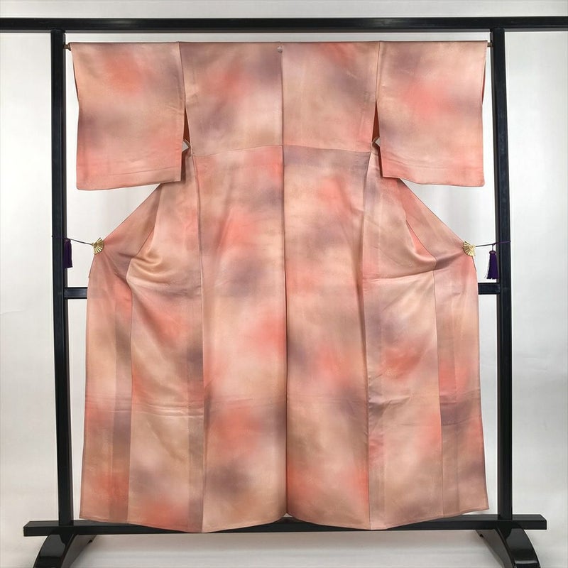 (中古) 単衣小紋 珊瑚色 ピンク カジュアル 金通し ぼかし染め ひとえ SS【身丈】153.5cm【裄丈】66cm