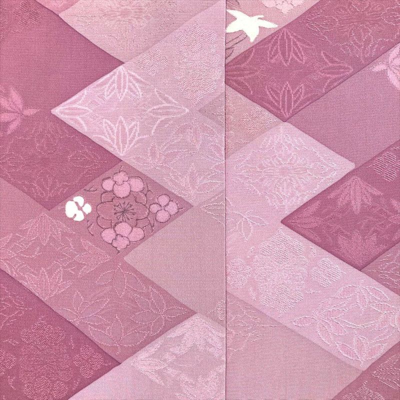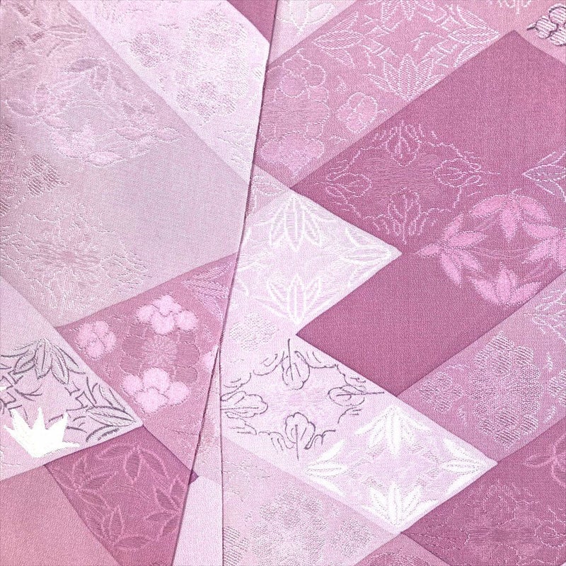 【色柄】藤色 紫 カジュアル 地紋織り 縫い取り 菱に四季花