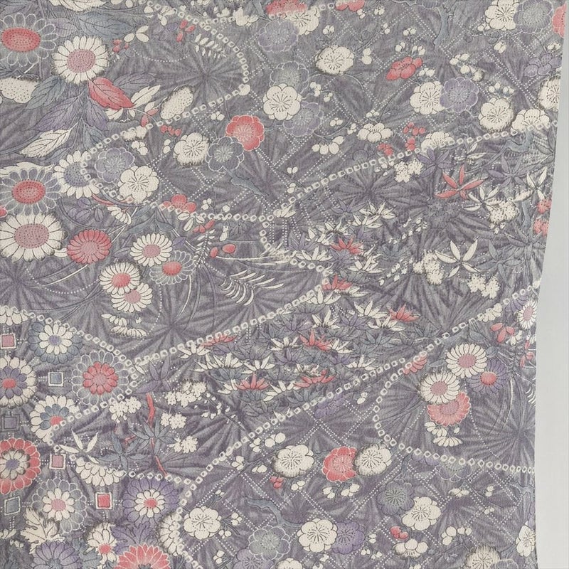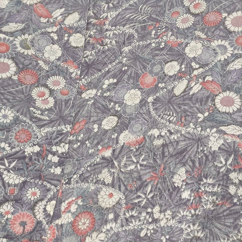 【色柄】紫 薄藤色 カジュアル ちりめん 割り付け 四季花