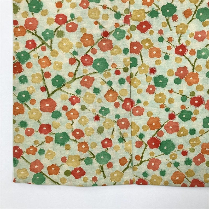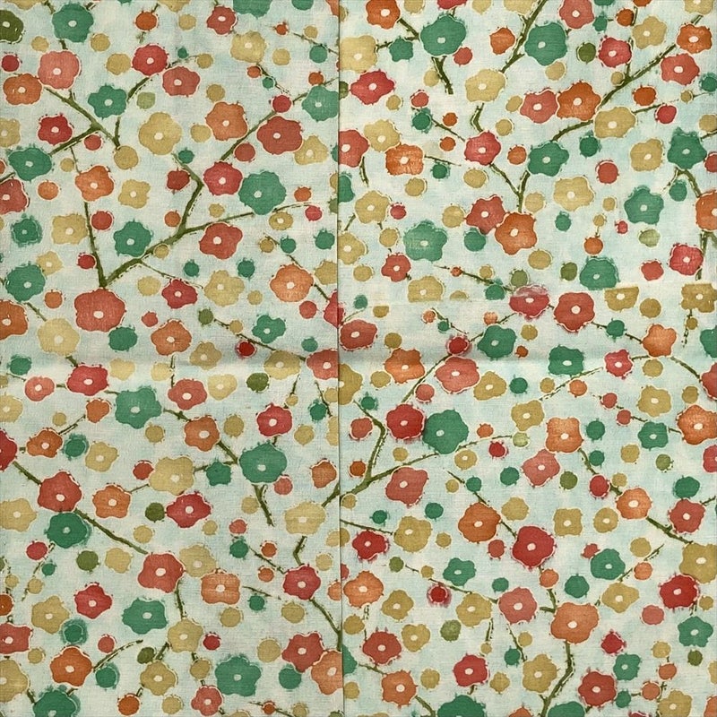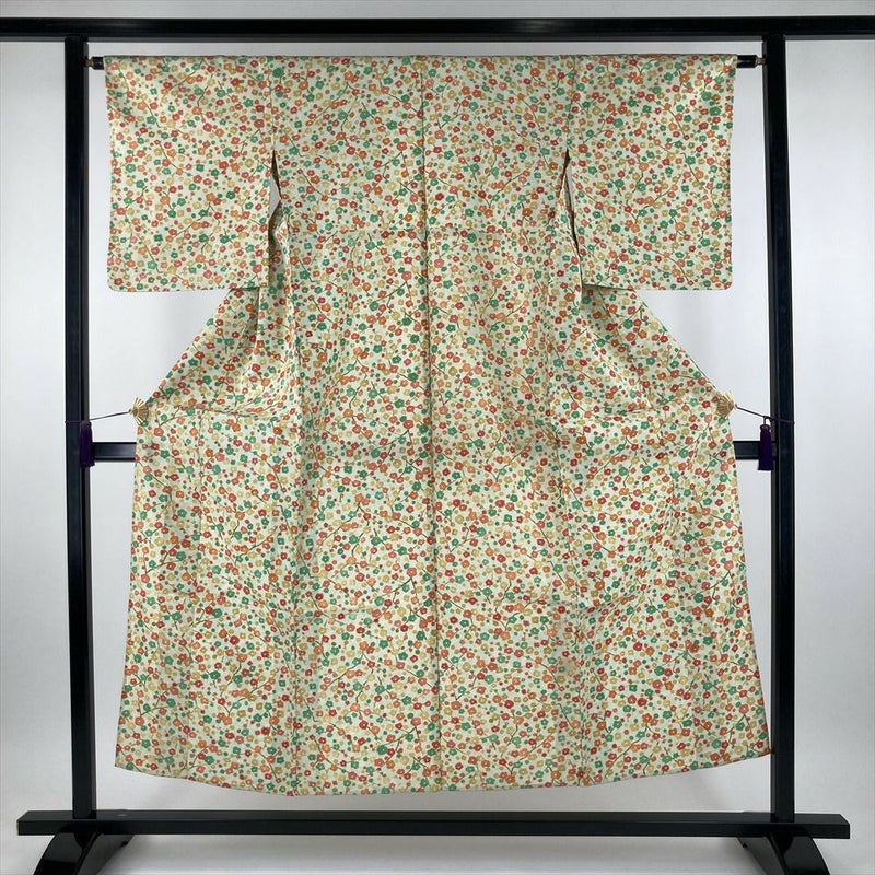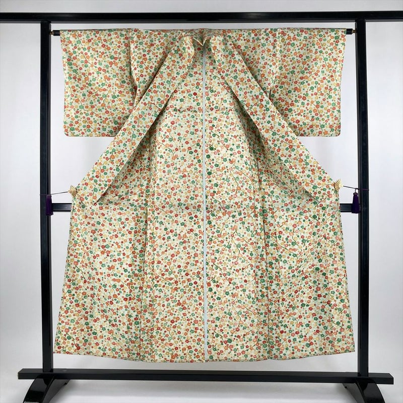 (中古) 単衣小紋 浅緑色 カジュアル 紬地 梅 水玉ぼかし ひとえ SS【身丈】147.5cm【裄丈】63.5cm