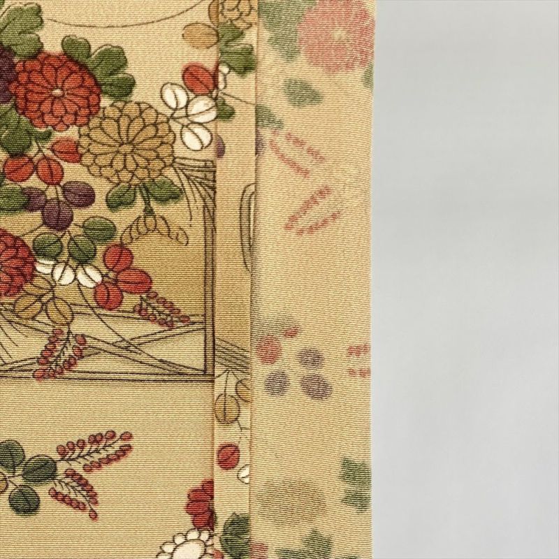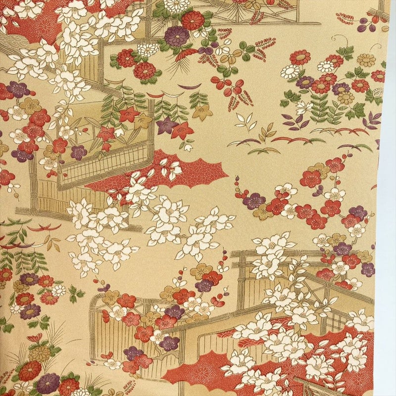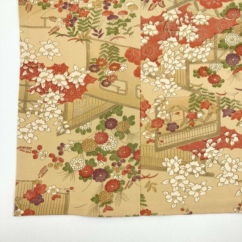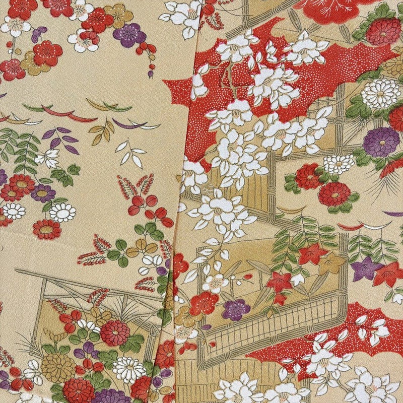 【色柄】ベージュ色 カジュアル ちりめん 四季花 垣根