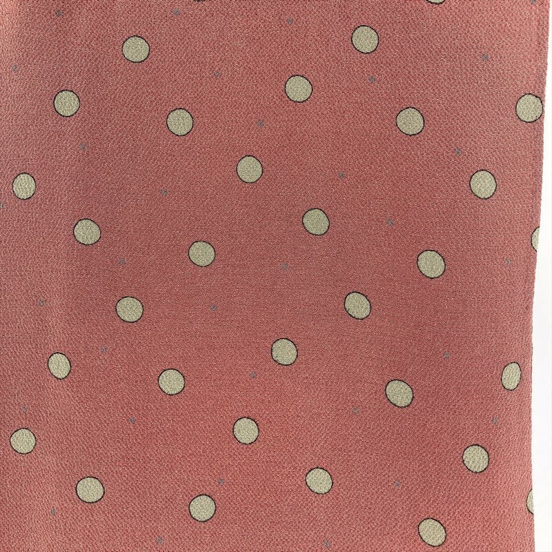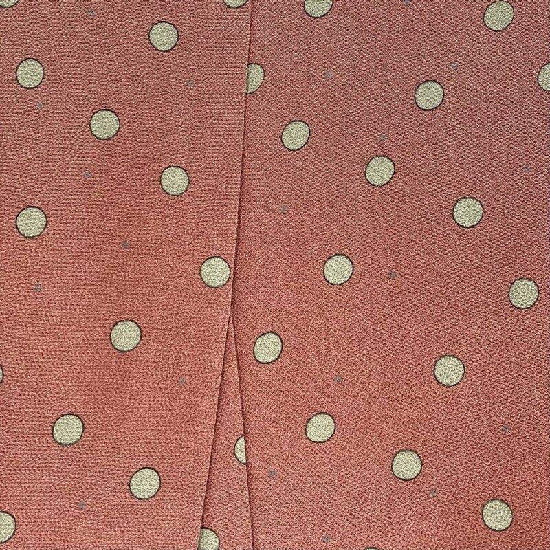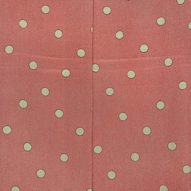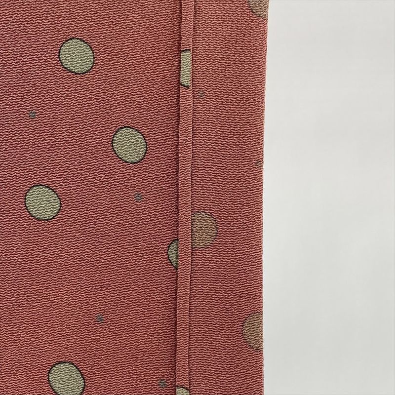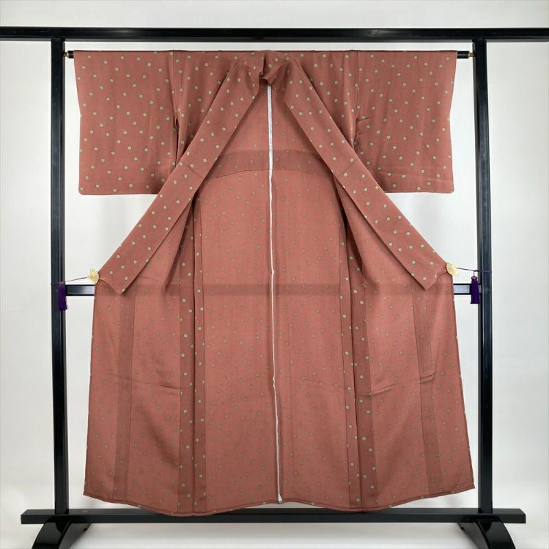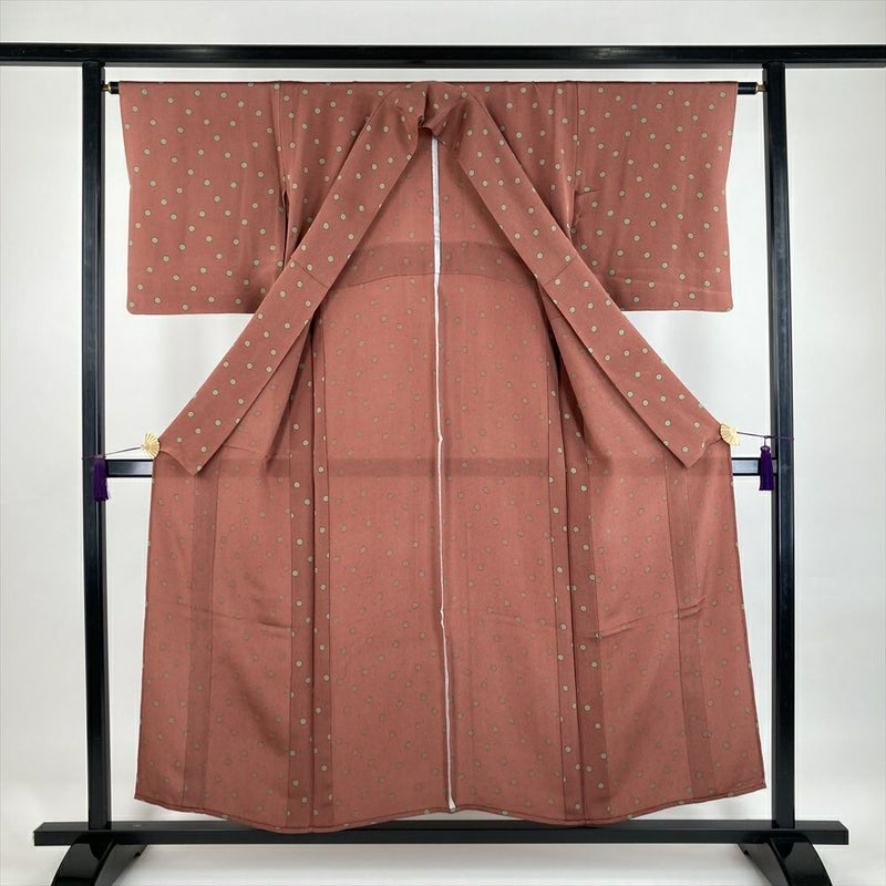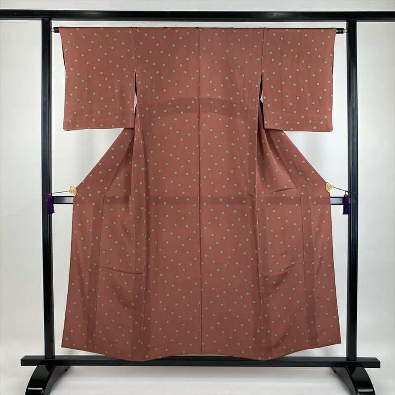 (中古) 単衣小紋 小豆色 カジュアル ちりめん 大小の水玉 ひとえ SS【身丈】150cm【裄丈】64cm