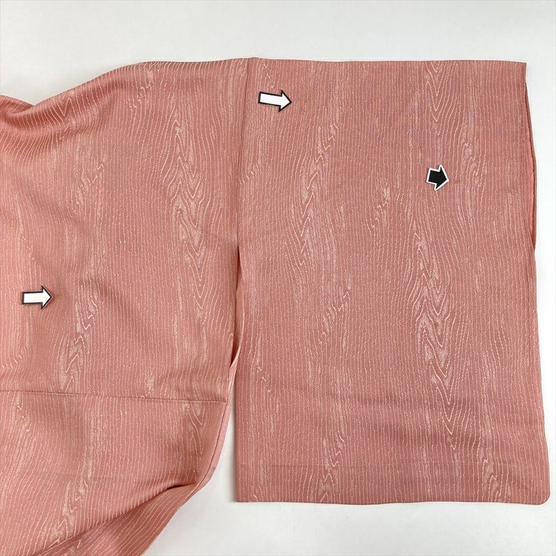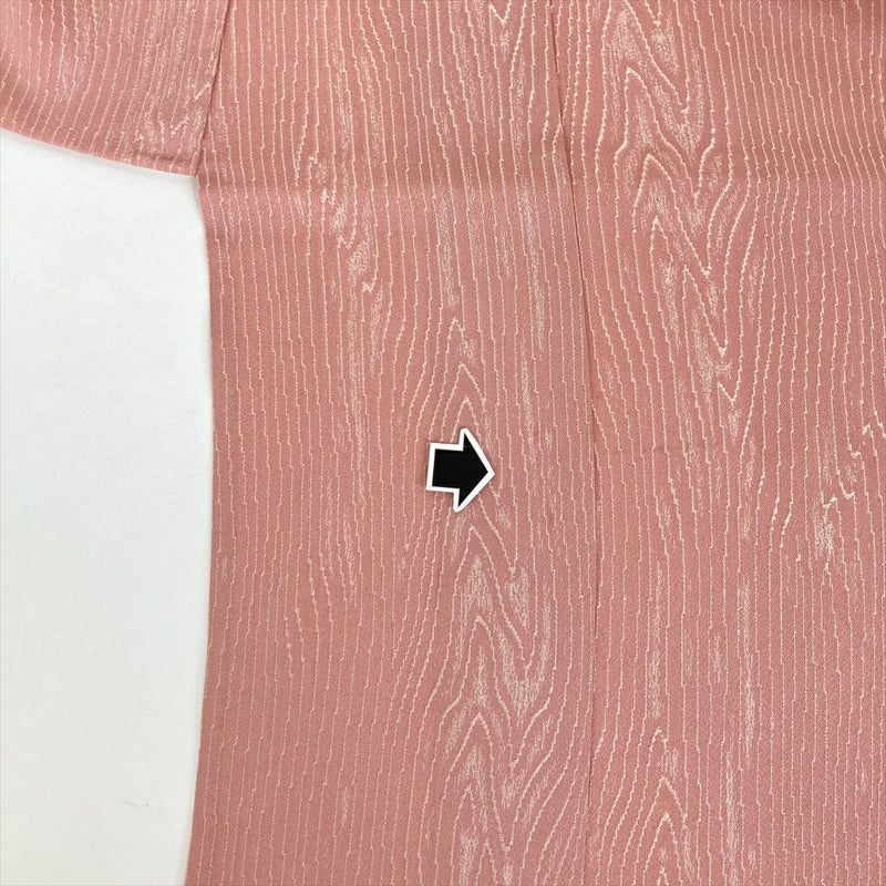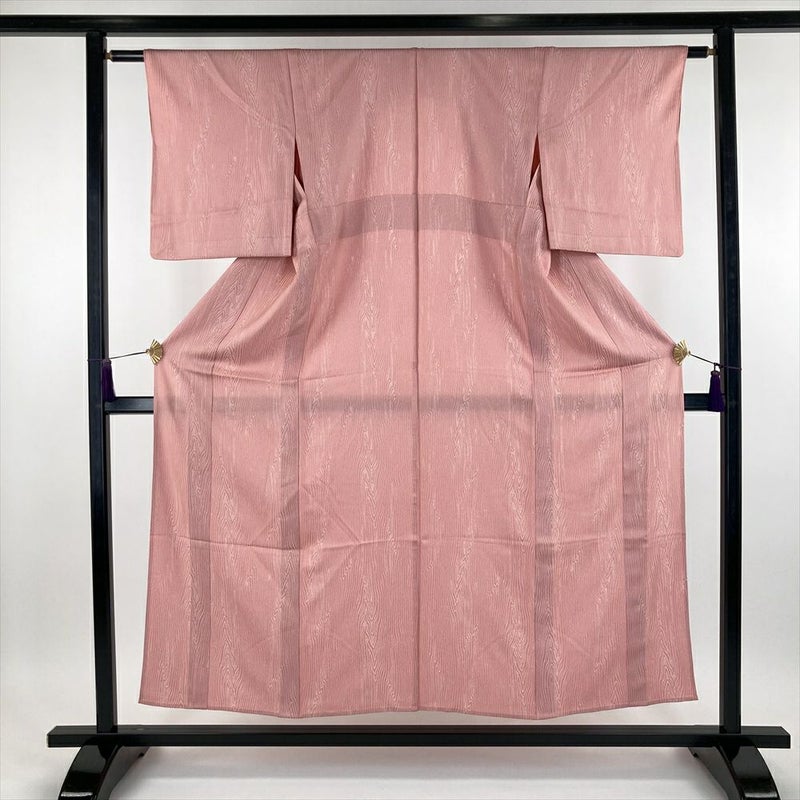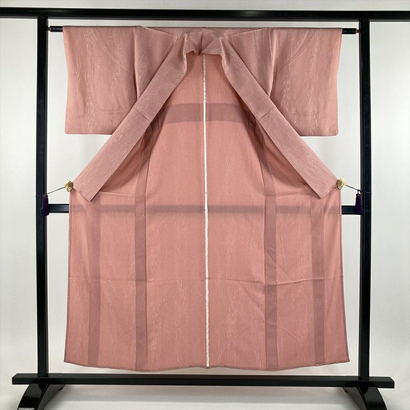 (中古) 単衣小紋 珊瑚色 ピンク色 カジュアル 地紋織り 杢目調 ひとえ SS 【身丈】150.5cm【裄丈】61cm