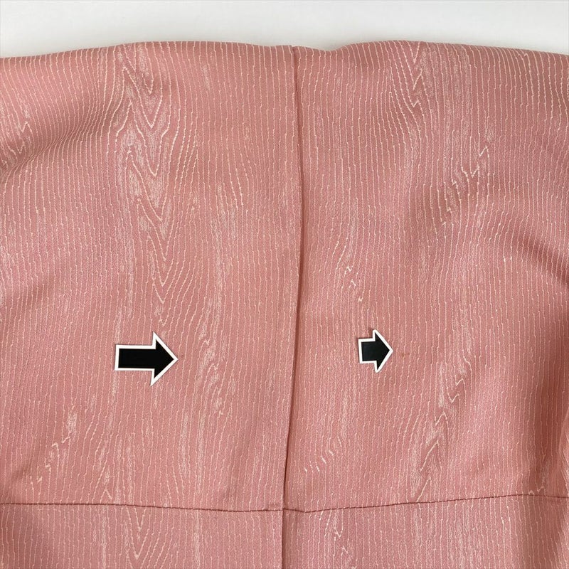 単衣の着物には、裏地が無いので軽く袷よりは涼しいですが、柔らかいので着物の線が出ずらく、少々着崩れやすいのが難点です。自分で着る場合、袷よりは難易度は高めです。夏の気分を感じるような、また一足早い秋を感じるような小物をコーディネートすれば、中間着としての単衣の良さを楽しむことができます。左右後身にシミ汚れがございます。保存臭がややございます。袖の後ろに汚れがございます。
