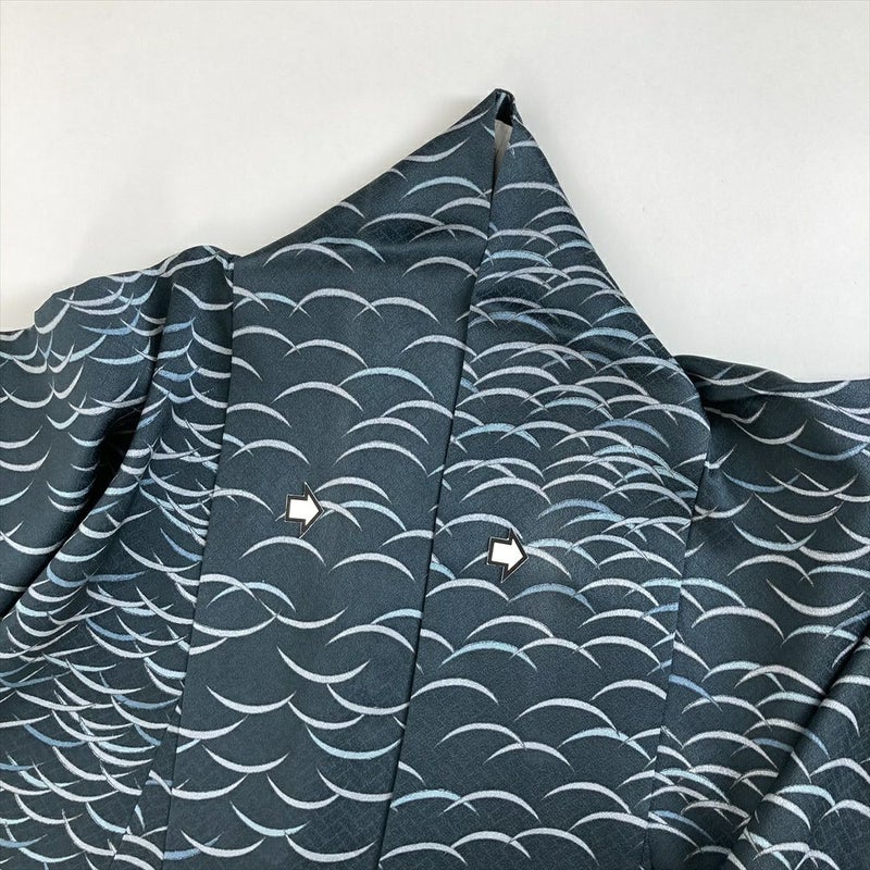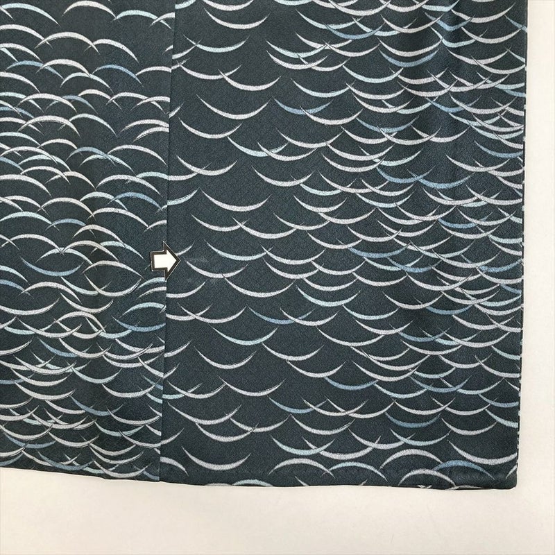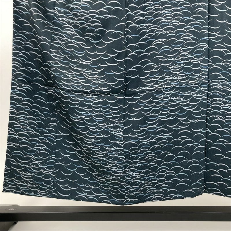 (中古) 単衣小紋 鉄紺色 カジュアル 露芝 ひとえ SS 【身丈】147.5cm【裄丈】65cm