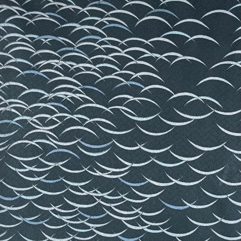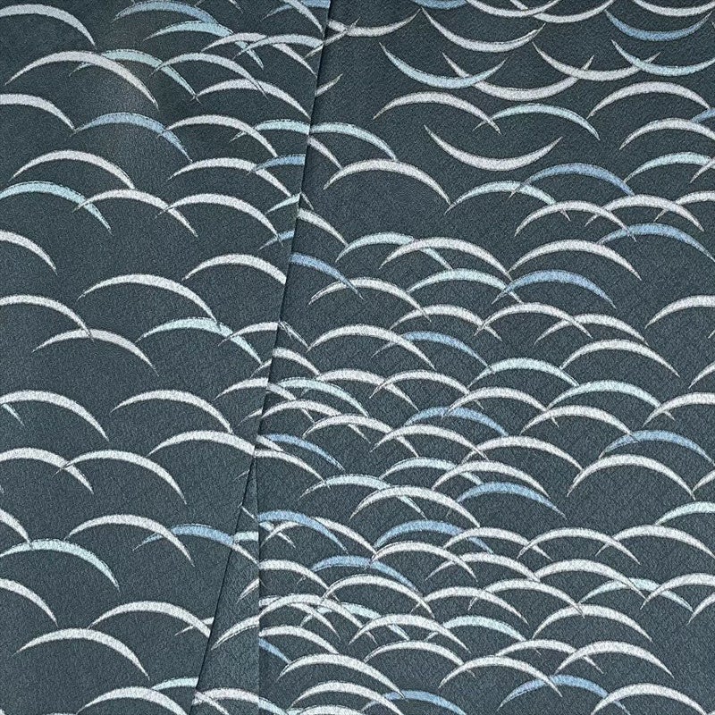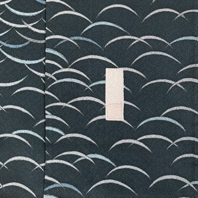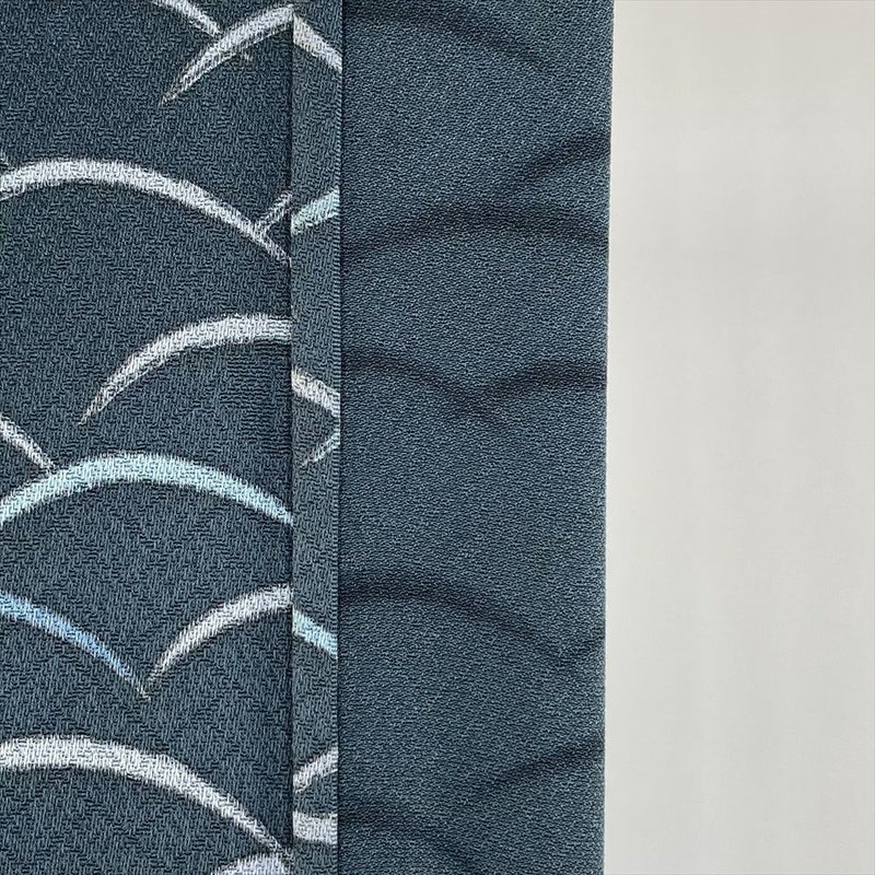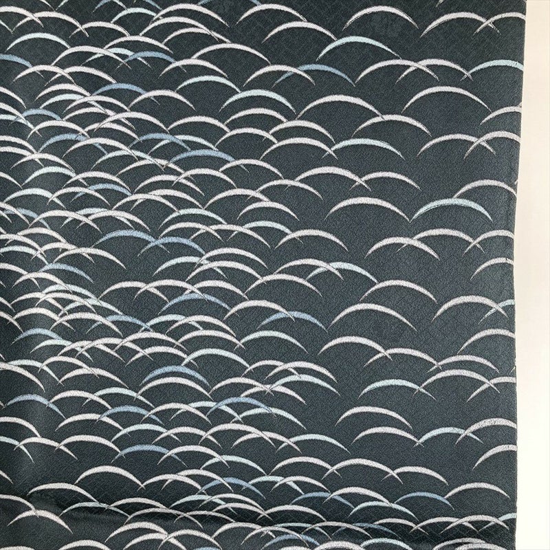 地紋とは、 糸や織り方を変えて布地全体に織り出した織模様のことです。 ふっくらとした地紋織り生地を使った着物や帯は、角度をつけて見ると、光の反射で美しい織り模様が見え、豊かで深みのある色合いに染め上がっています。衿汚れがございます。上前にスレがございます。保存臭がややございます。
