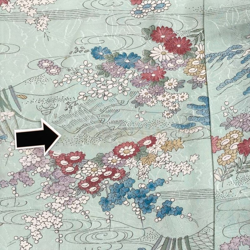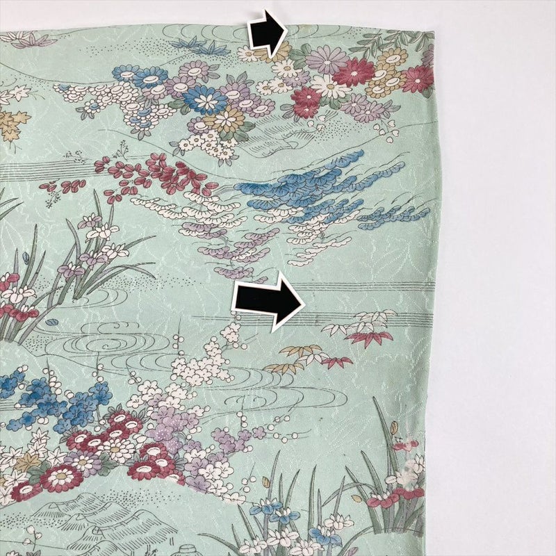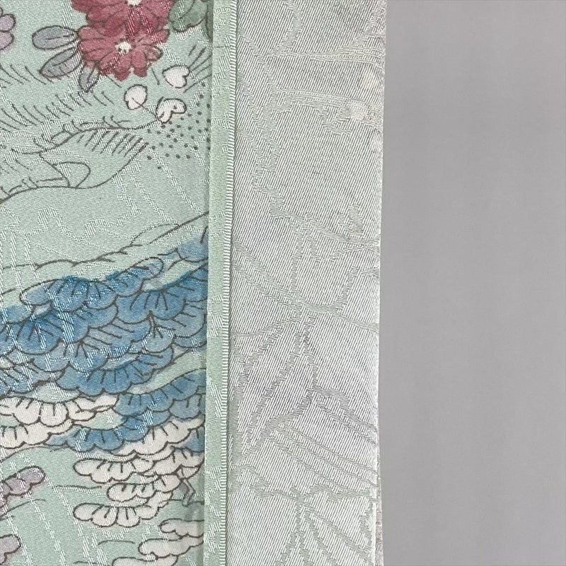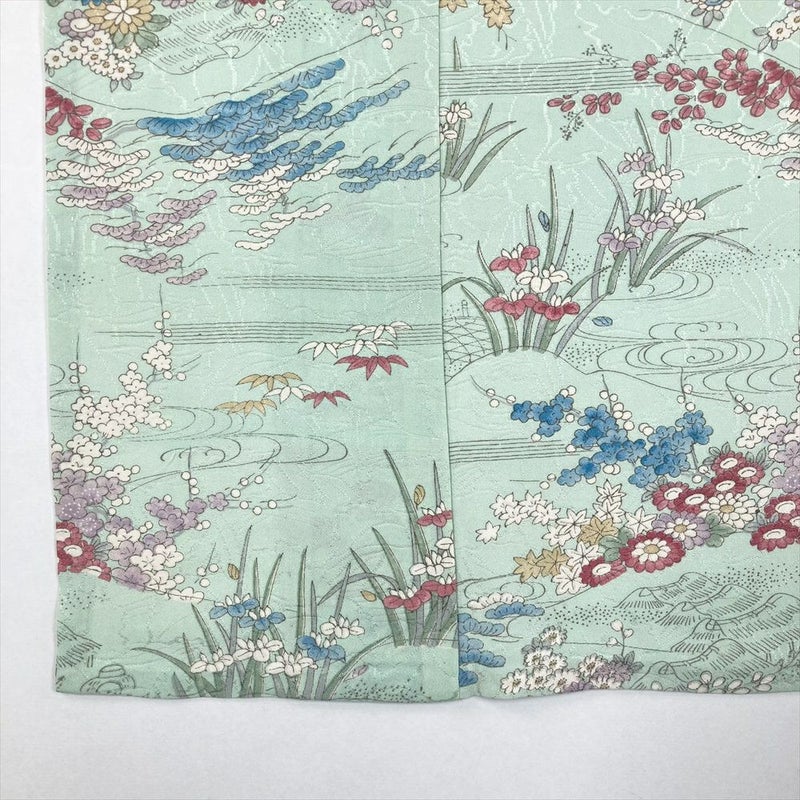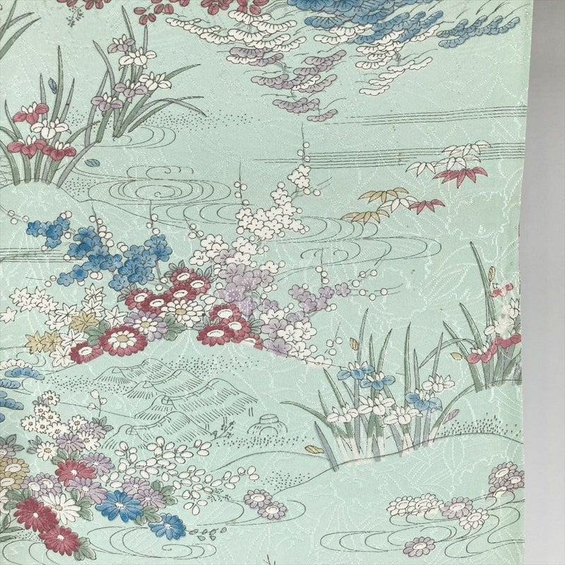 【色柄】薄緑色 水色 カジュアル 地紋織り 四季花 水辺の景色