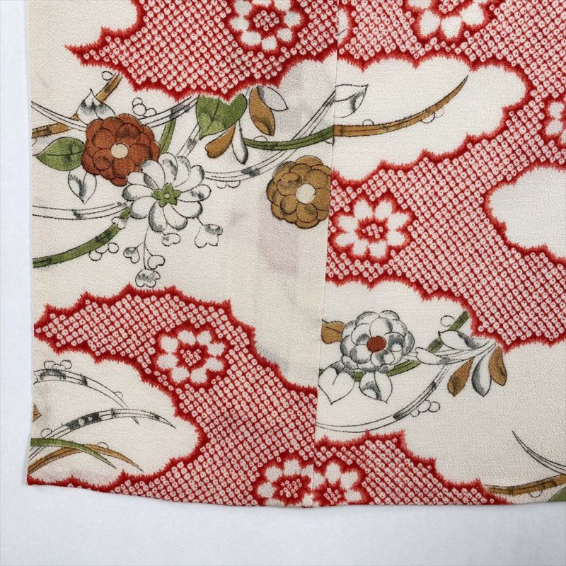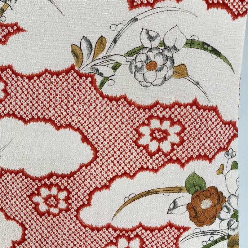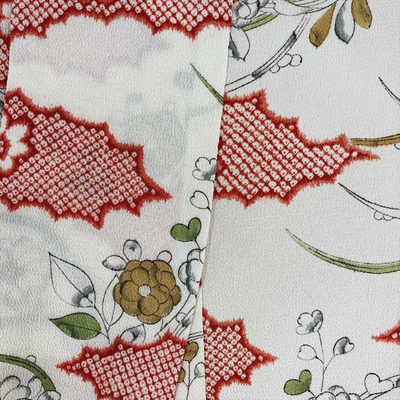 【色柄】生成り色 赤色 カジュアル ちりめん 雲 辻が花 鹿の子