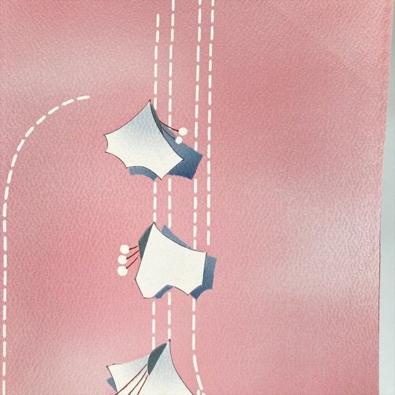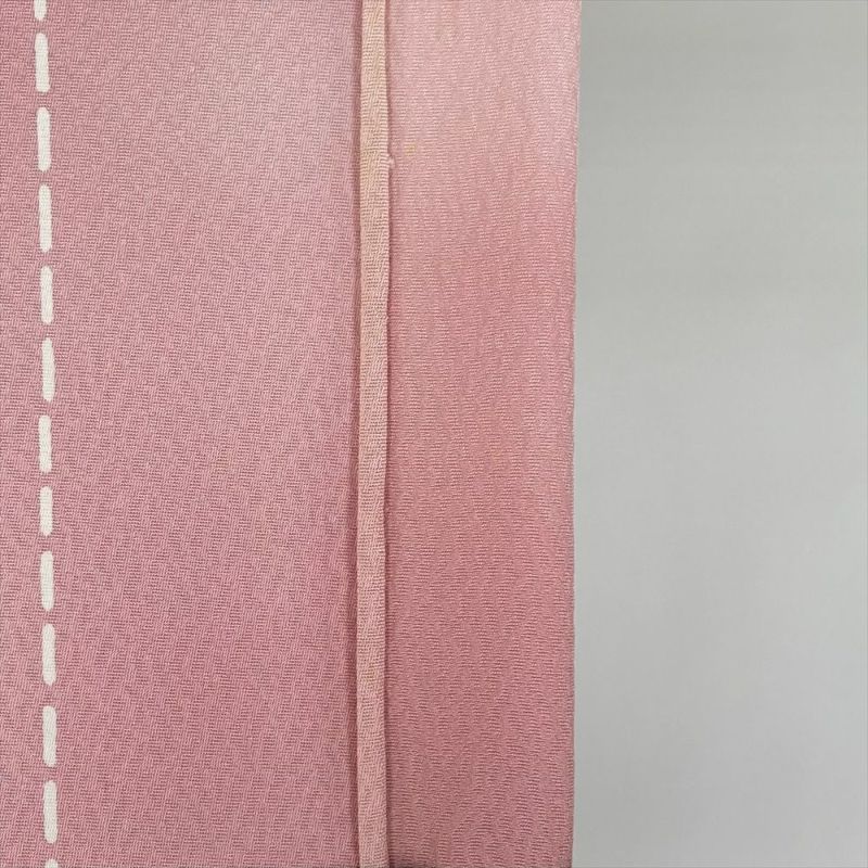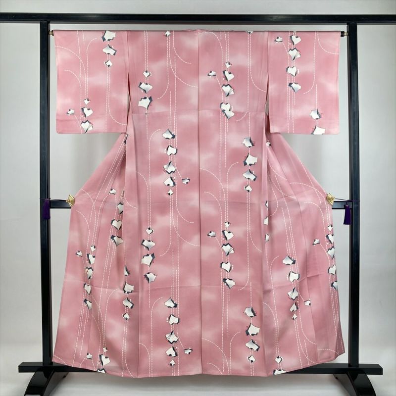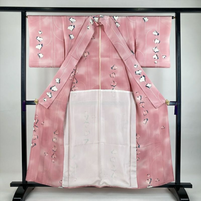 (中古) 単衣小紋 ピンク色 カジュアル 地紋織り 花蝶 抽象柄 ひとえ SS【身丈】153.5cm【裄丈】66cm