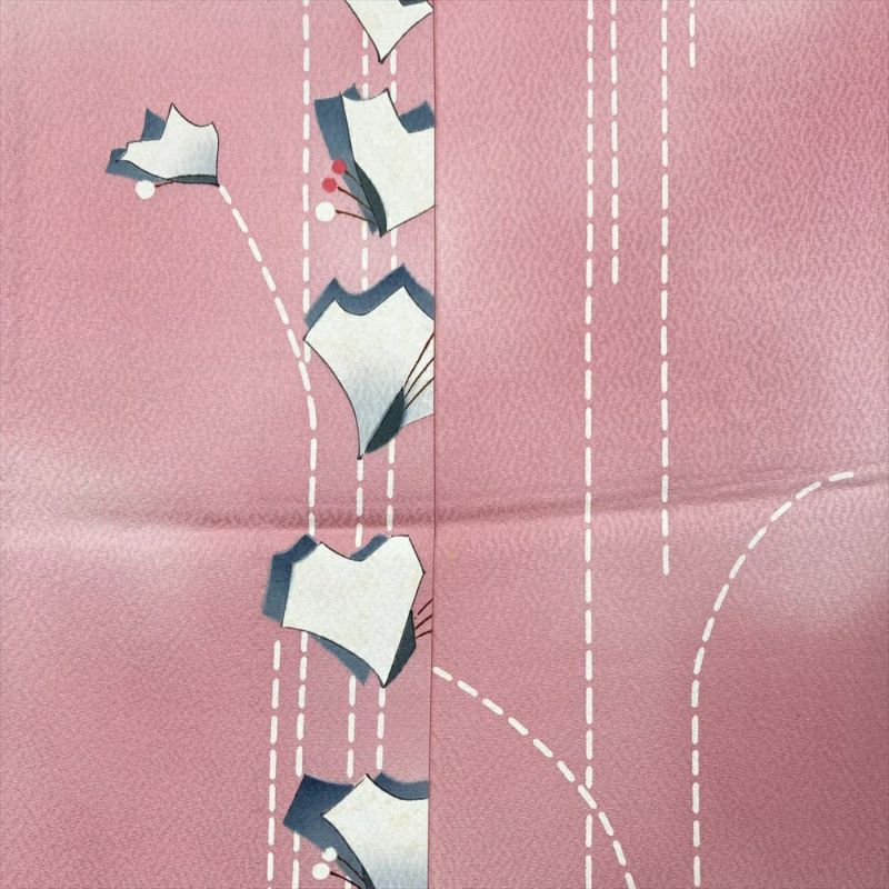 【色柄】ピンク色 カジュアル 地紋織り 花蝶 抽象柄