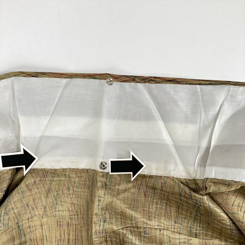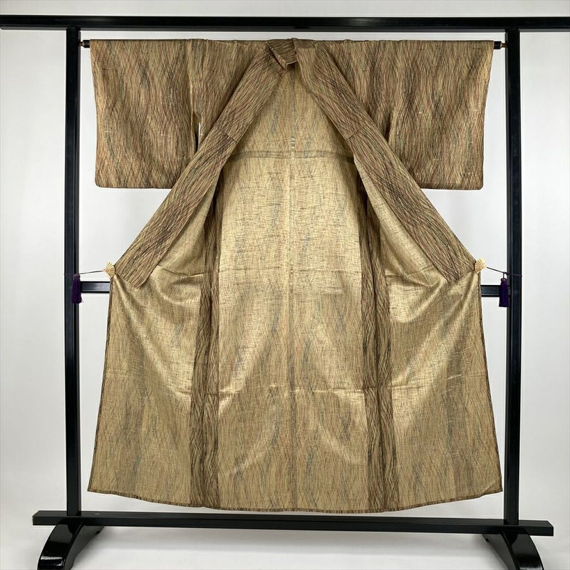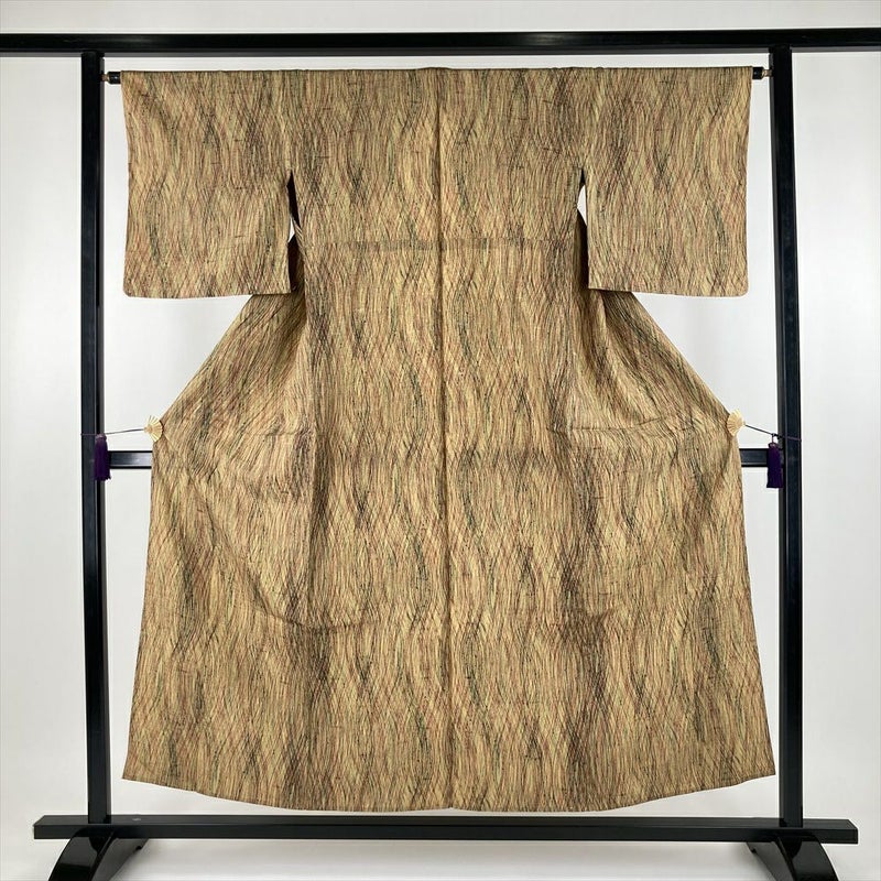 単衣の着物は裏地がついていません、袷の着物よりも軽く、風通しが良いのが特徴です。 袷ほど着る期間は長くないですが、春に急に気温が上がったときや、まだ暑さの残っている秋口に活躍します。現在は、温暖化のため単衣を長い期間(2ヶ月~5ヶ月未満)着用する人が増えてきました。衿裏にサビ糸がございます。保存臭がややございます。