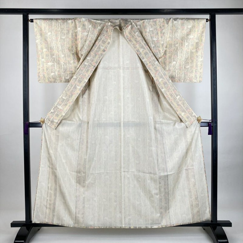 単衣の着物は裏地がついていません、袷の着物よりも軽く、風通しが良いのが特徴です。 袷ほど着る期間は長くないですが、春に急に気温が上がったときや、まだ暑さの残っている秋口に活躍します。現在は、温暖化のため単衣を長い期間(2ヶ月~5ヶ月未満)着用する人が増えてきました。保存臭がややございます。