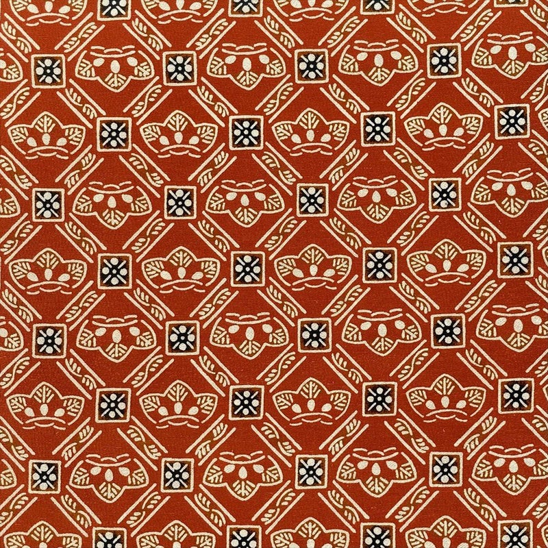 型染めは、日本の伝統的な染色技法の一つで、型紙を用いて布に模様を染め出す技法です。型紙に彫られた模様に沿って防染糊を置き、染料を染み込ませることで、美しい模様を生み出します。型紙作りから染めまで、全て手作業で行われるため、一つ一つに個性があります。機械生産では出せない、手仕事の温もりが感じられるのも魅力の一つです。保存臭がややございます。