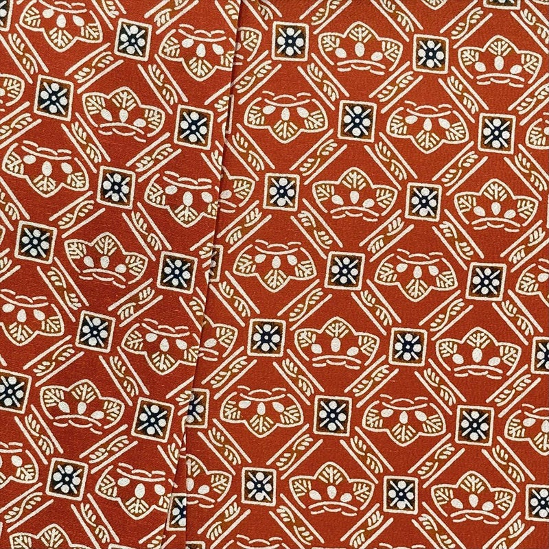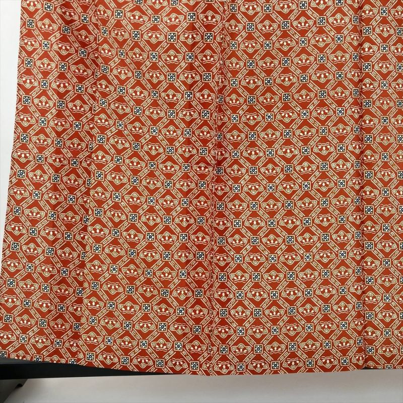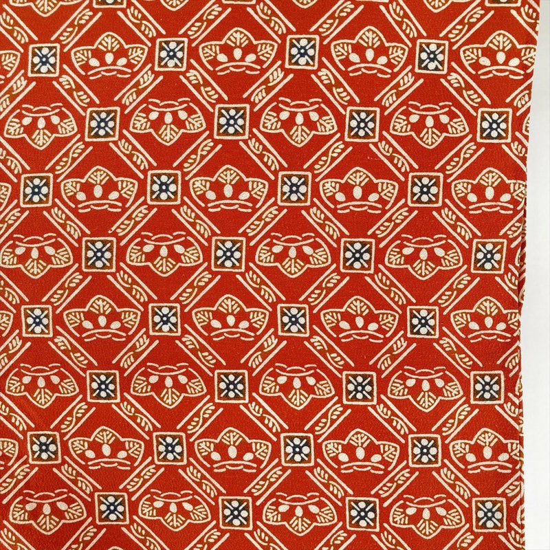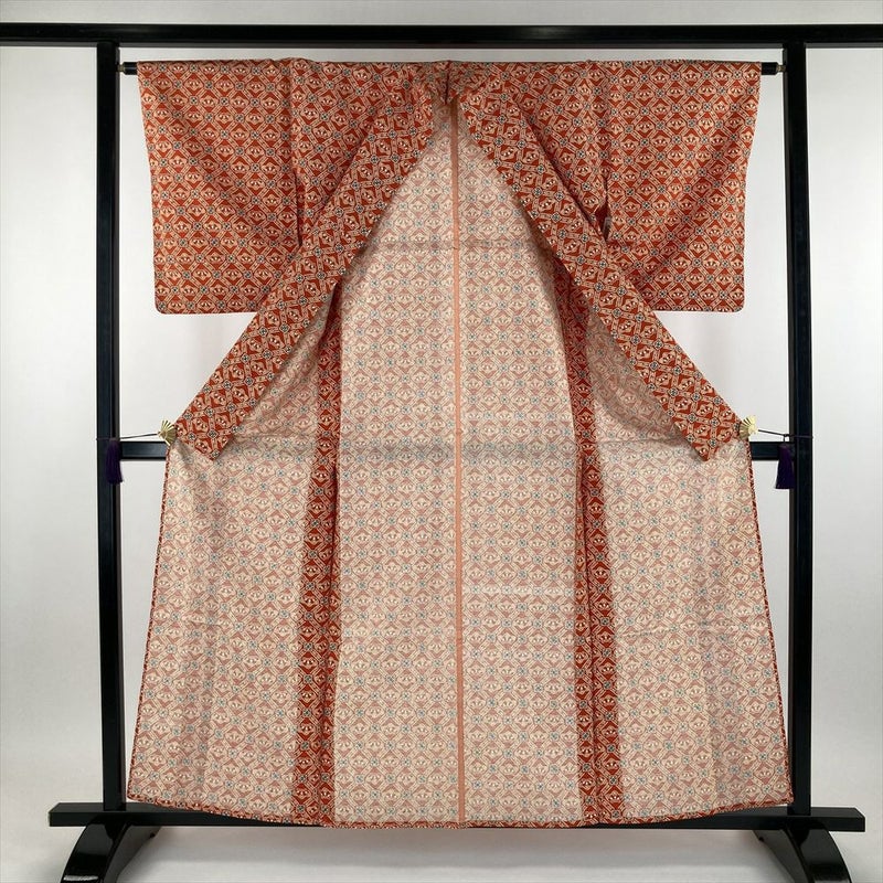 (中古) 単衣小紋 朱色 オレンジ色 カジュアル 染め 斜め格子 松 ひとえ S 【身丈】155cm【裄丈】63.5cm