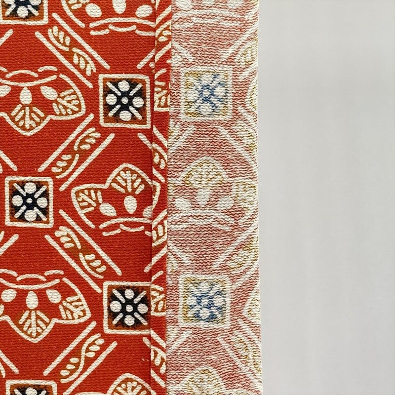 【色柄】朱色 オレンジ色 カジュアル 染め 斜め格子 松