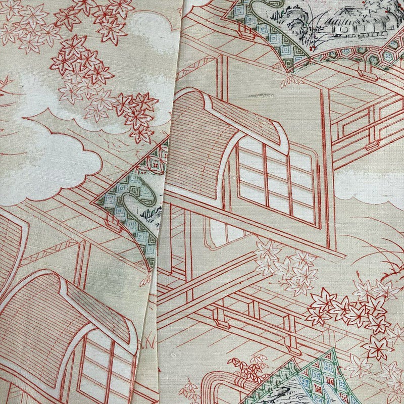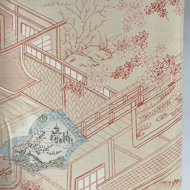 【色柄】生成り色 カジュアル 紬地 冊子 宮殿 四季花