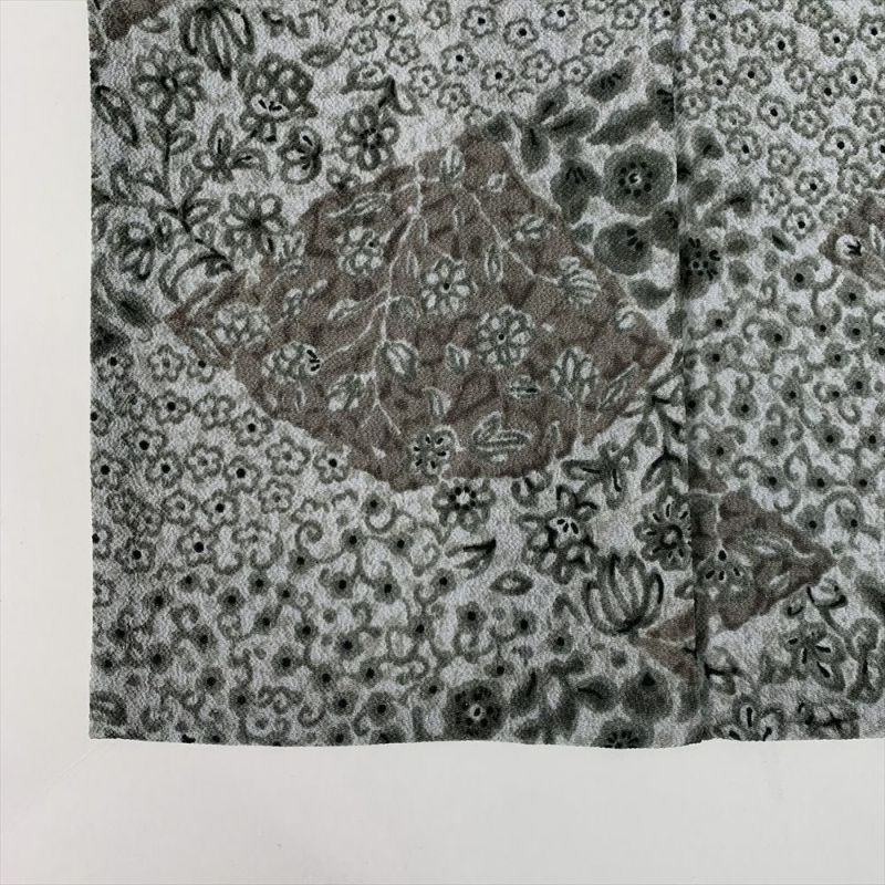 【色柄】グレー カジュアル 縮緬 小花 菱 ひとえ