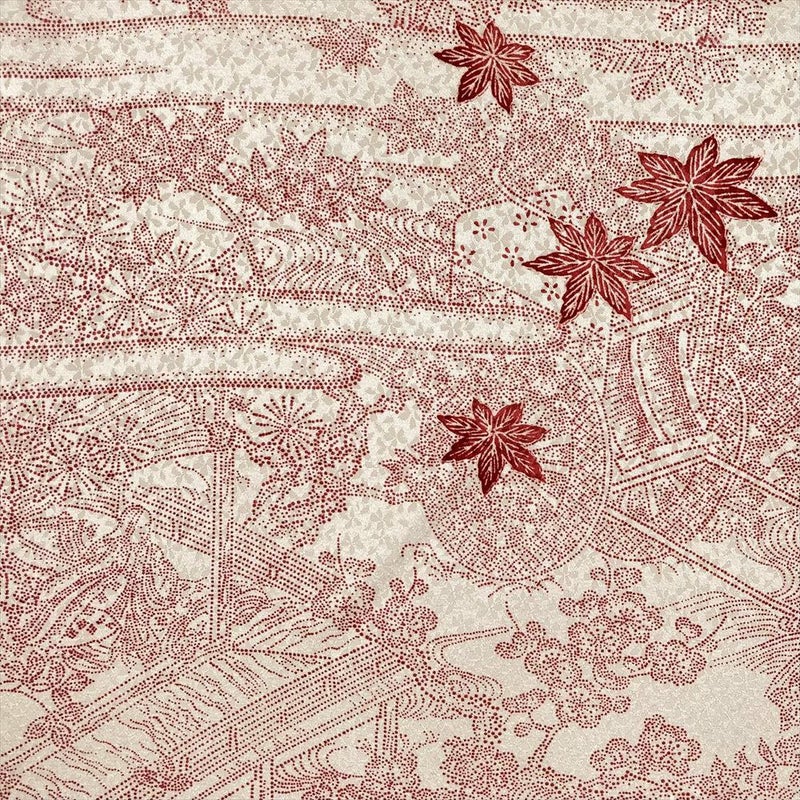 【色柄】生成り色 カジュアル 地紋織り 殿と姫 御所車 四季花