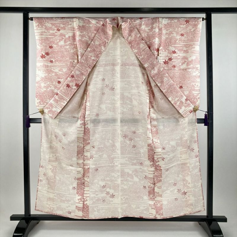 単衣の着物は裏地がついていません、袷の着物よりも軽く、風通しが良いのが特徴です。 袷ほど着る期間は長くないですが、春に急に気温が上がったときや、まだ暑さの残っている秋口に活躍します。現在は、温暖化のため単衣を長い期間(2ヶ月~5ヶ月未満)着用する人が増えてきました。保存臭がややございます。