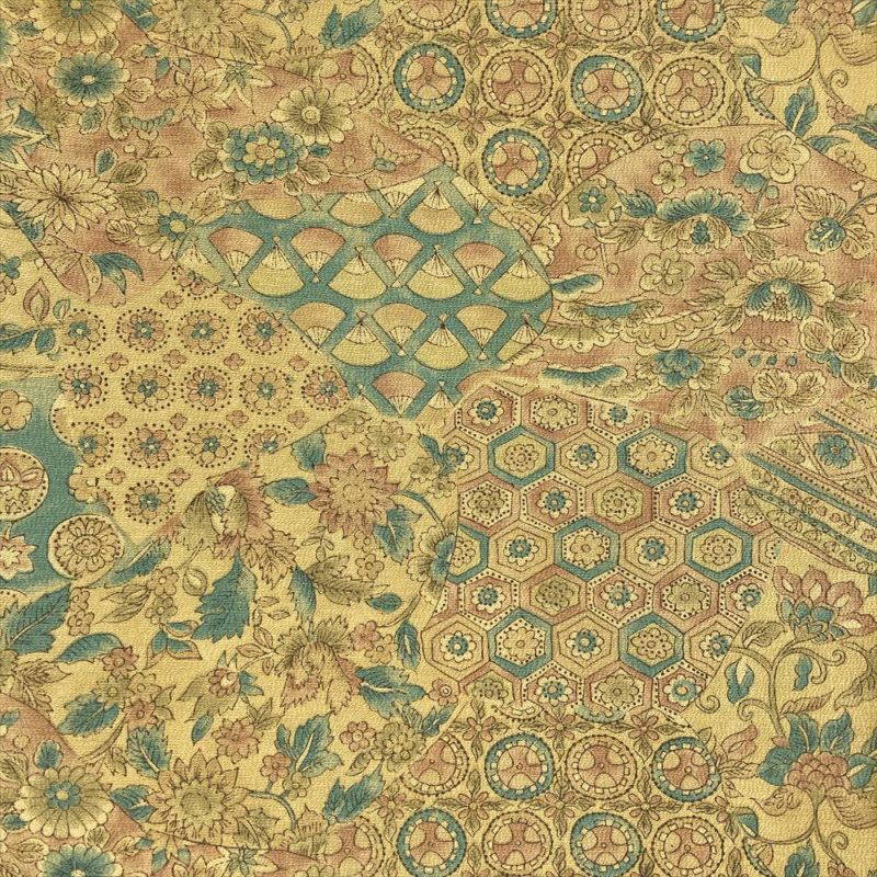 【色柄】黄緑 鶸色 青緑色 カジュアル 紬地 和更紗 吉祥柄