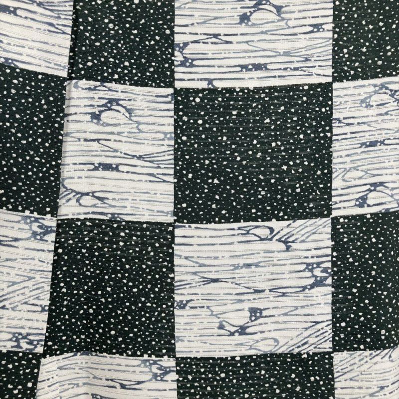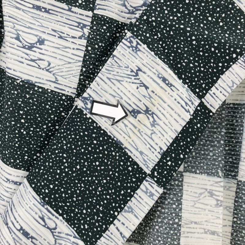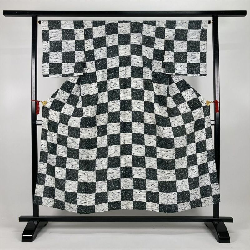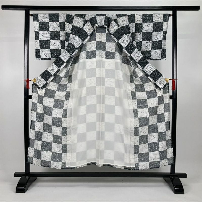 (中古)単衣小紋 白 緑 カジュアル 市松模様 あられ ひとえ SS【身丈】147.5cm【裄丈】66.5cm