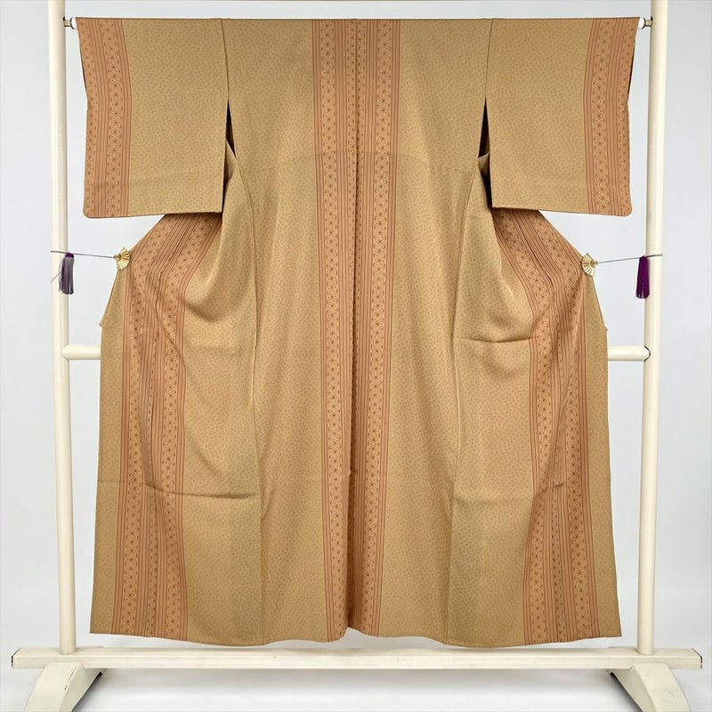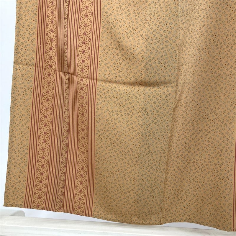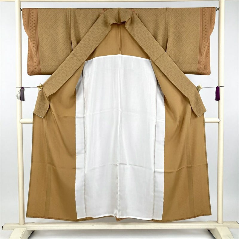 (中古) 小紋 芥子色 黄色 カジュアル 梅 麻の葉 竹 単衣 絹【身丈】146cm【裄丈】66cm