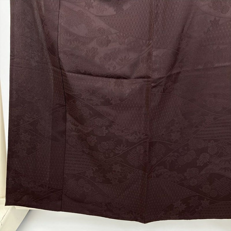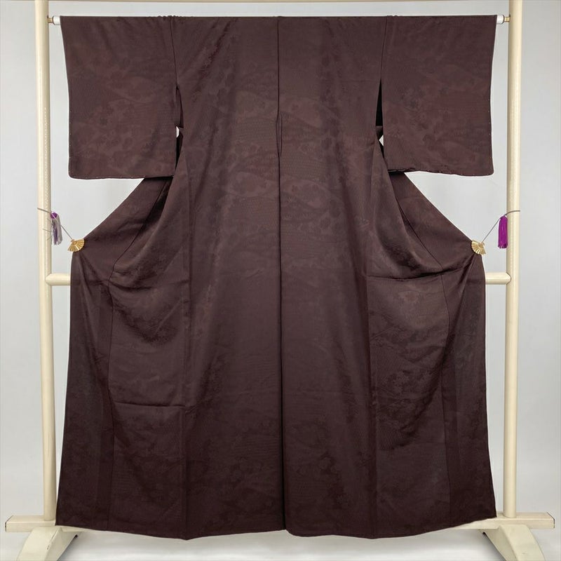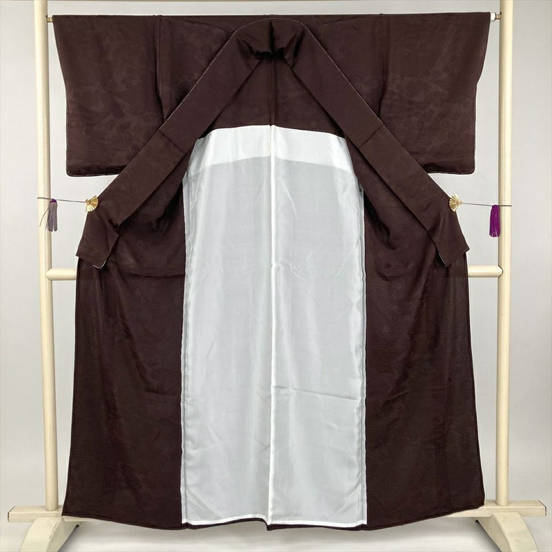 (中古) 色無地 焦げ茶色 セミフォーマル 地紋織り 単衣 絹【身丈】155cm【裄丈】65.5cm
