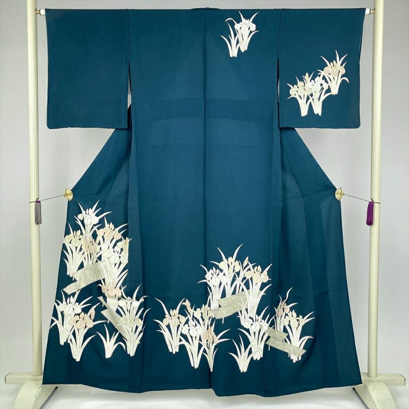 【色柄】青緑 セミフォーマル 金彩 菖蒲