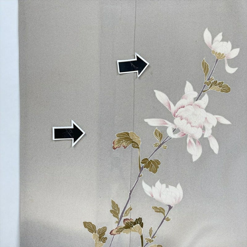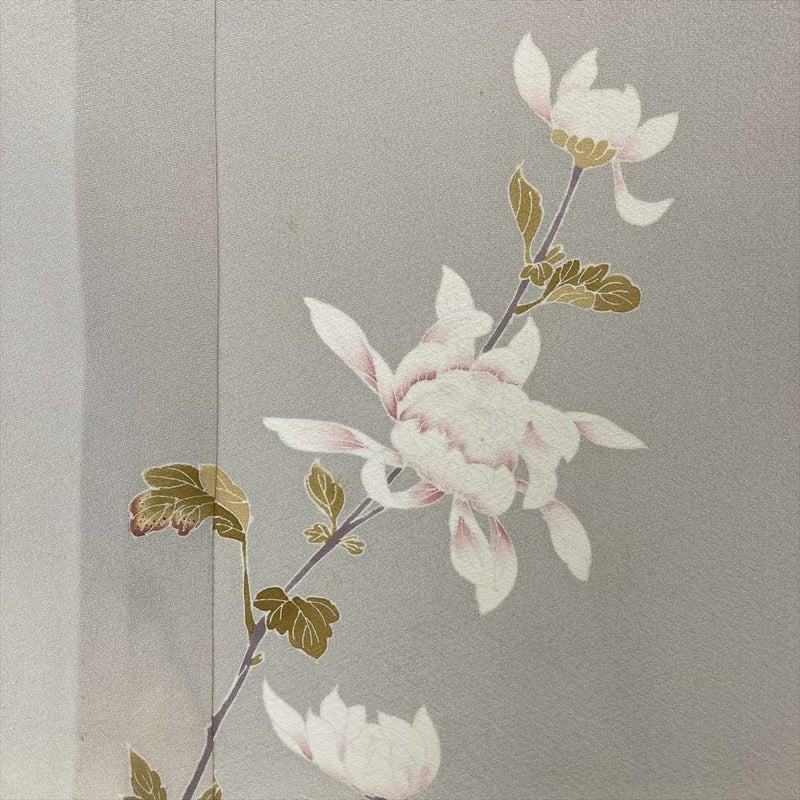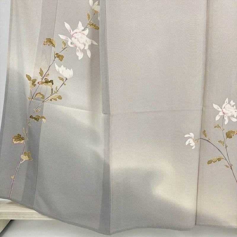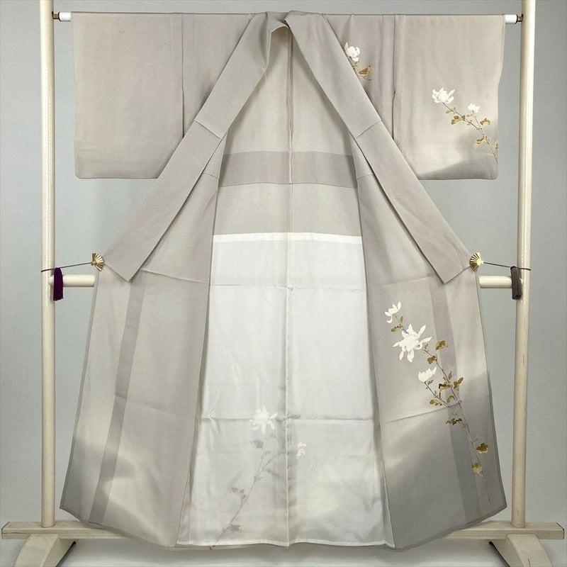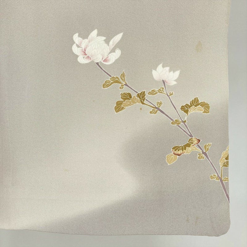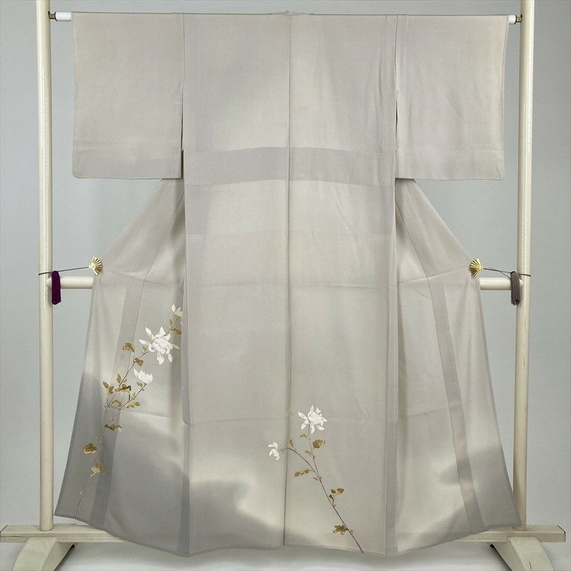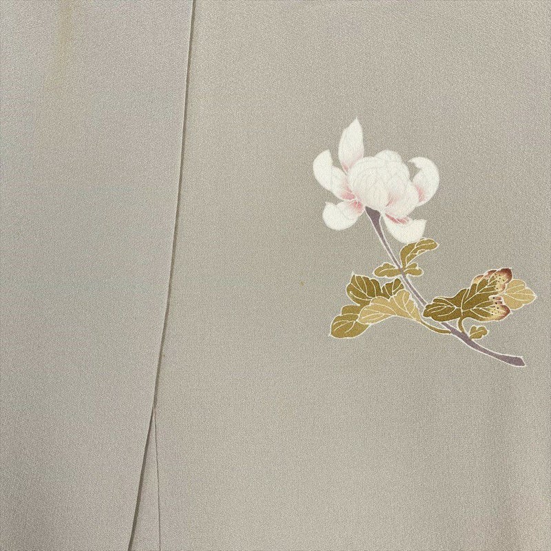 (中古)付下 グレージュ ベージュ セミフォーマル 菊 単衣 絹【身丈】153cm【裄丈】63cm