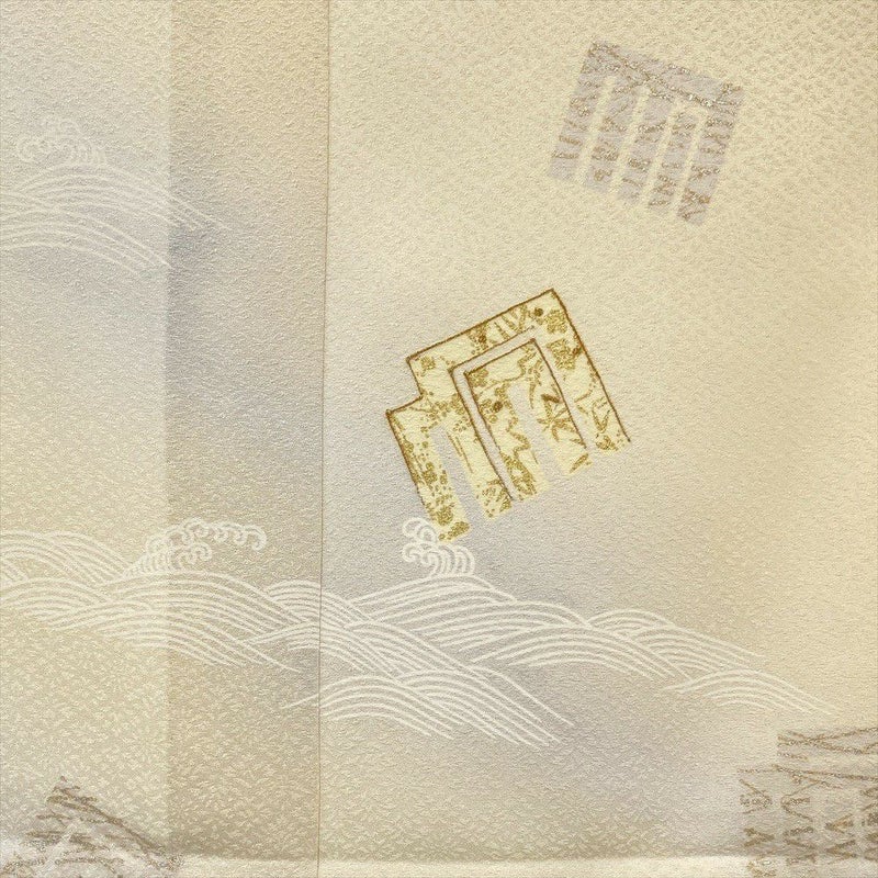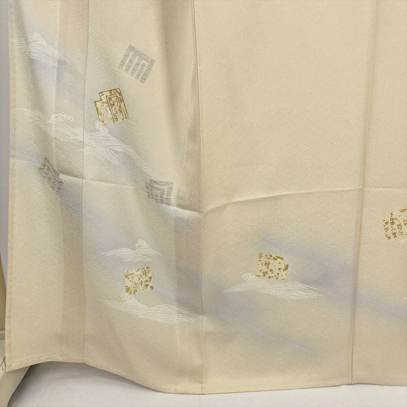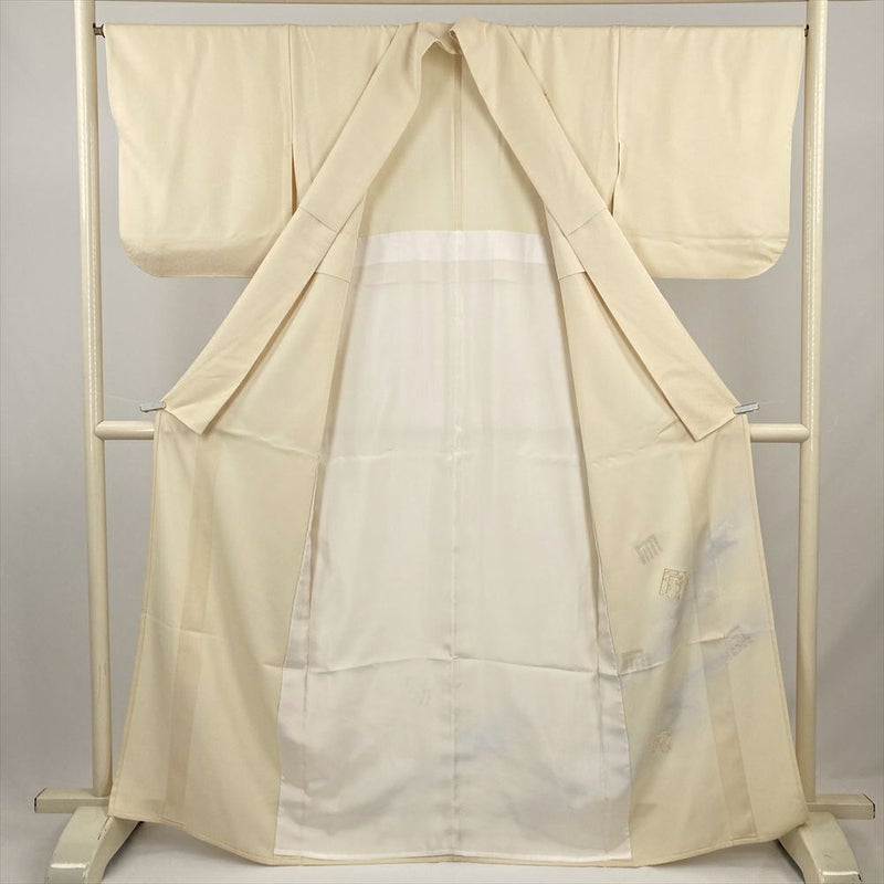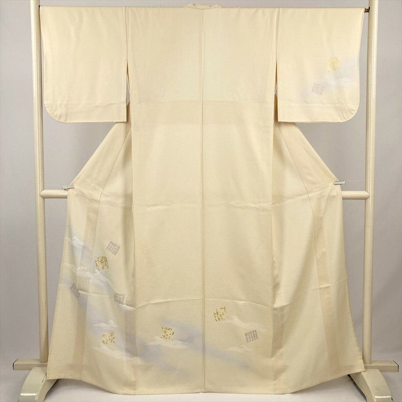 (中古) 単衣訪問着 イエローベージュ 黄色 セミフォーマル 流水 源氏香 単衣 絹 【身丈】160cm【裄丈】67cm