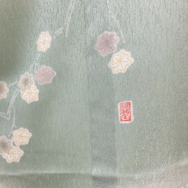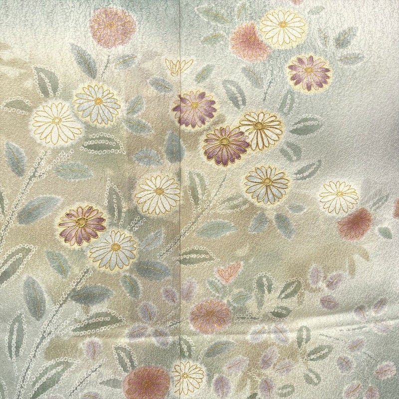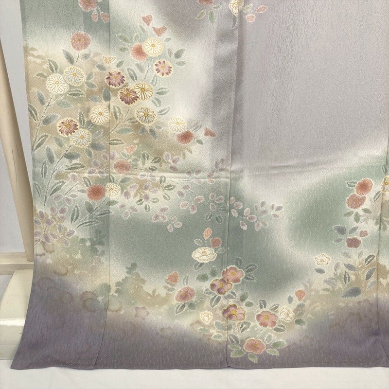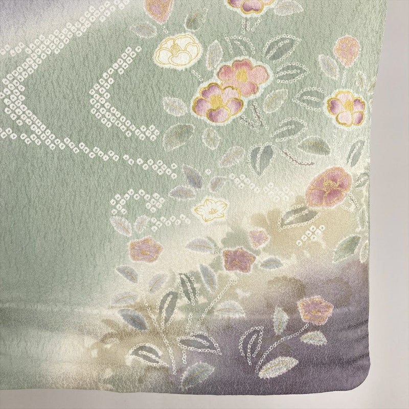 (中古) 単衣訪問着 薄緑 薄紫 セミフォーマル 桜 菊 椿 単衣 絹 【身丈】169cm【裄丈】72cm