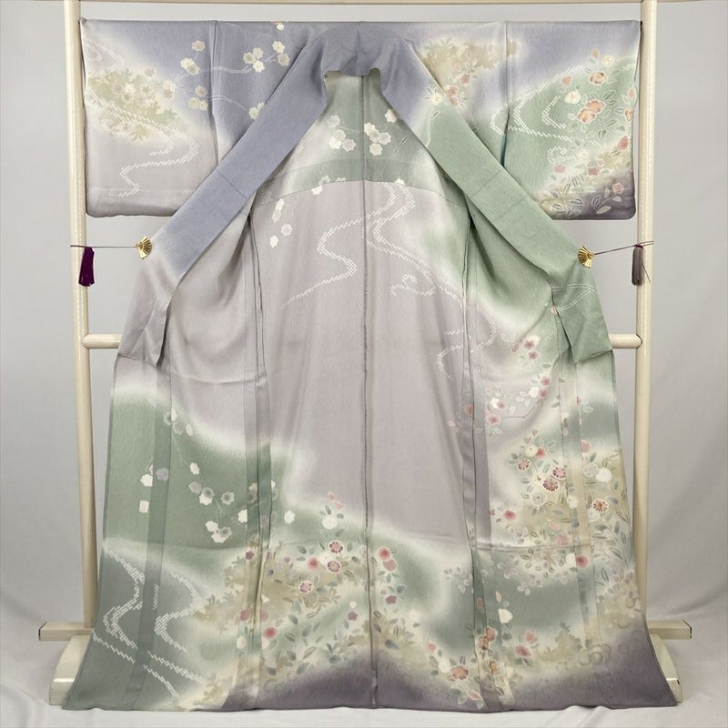 <div class=薄緑と薄紫の爽やかなぼかし染めが美しい単衣訪問着 。