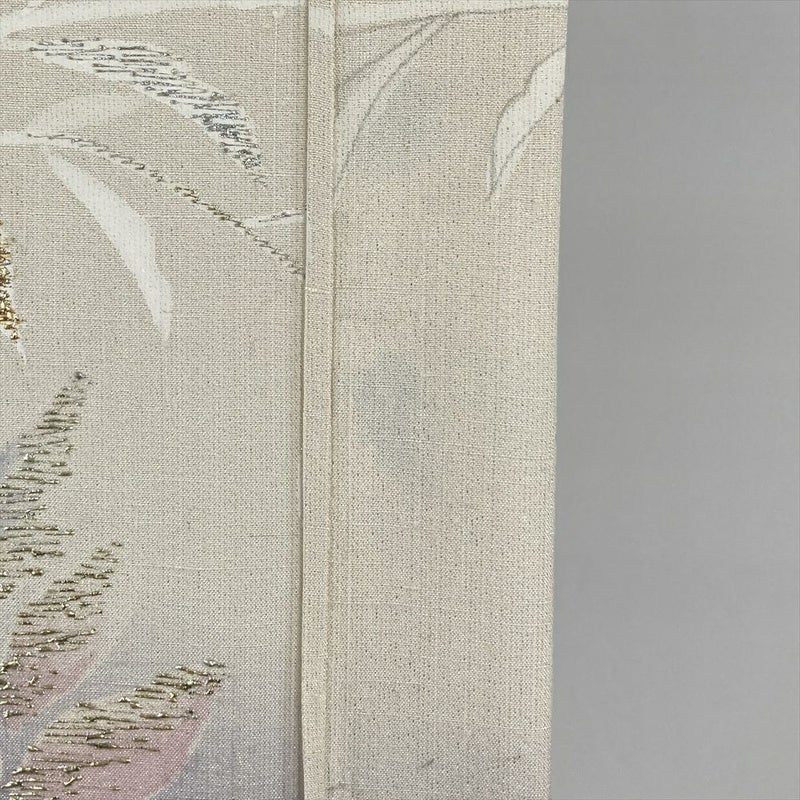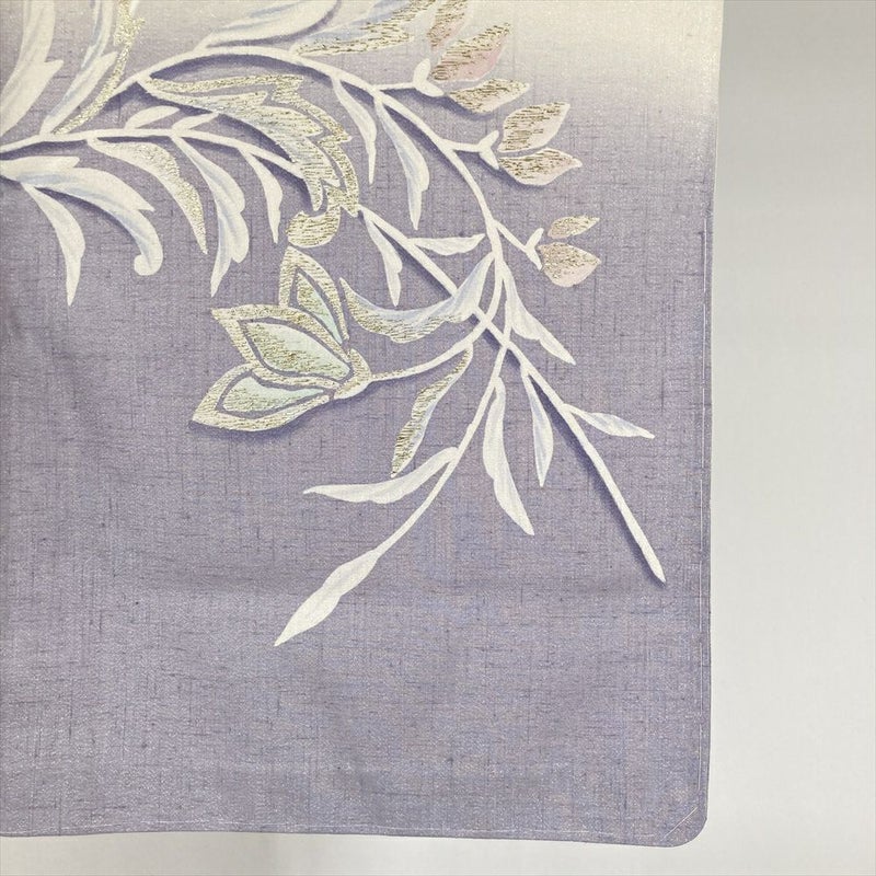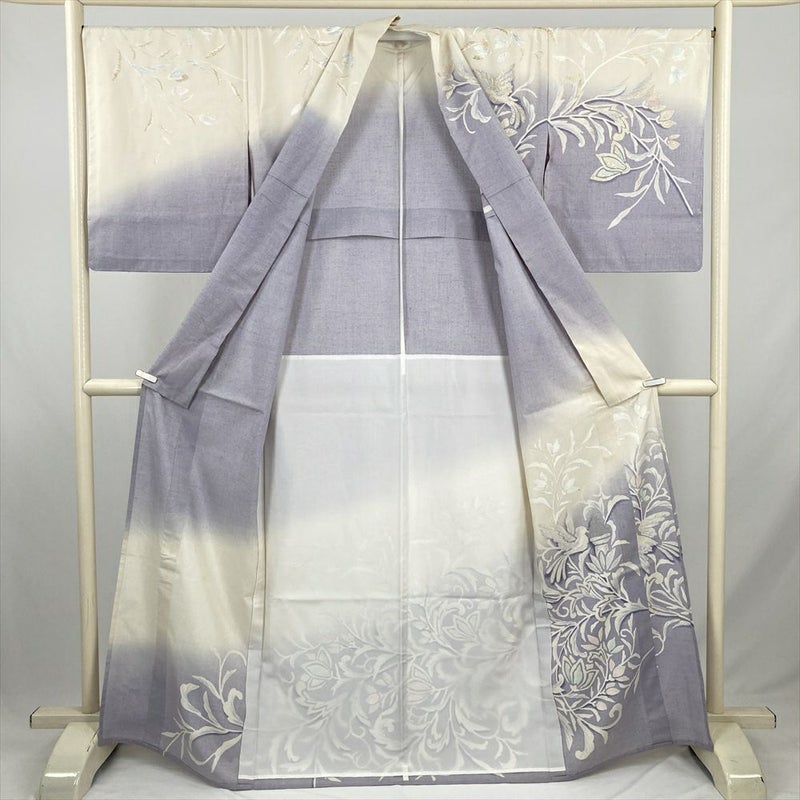 (中古) 単衣訪問着 白茶 薄青紫 カジュアル セミフォーマル オリエンタル 花鳥 単衣 絹 【身丈】160.5cm【裄丈】68cm