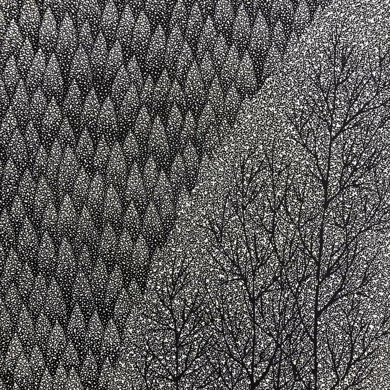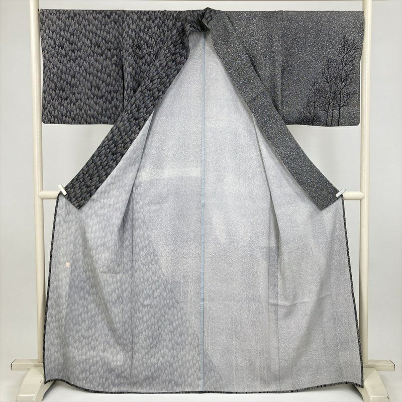 (中古) 単衣訪問着 黒 セミフォーマル 木立 単衣 絹【身丈】162cm【裄丈】70cm