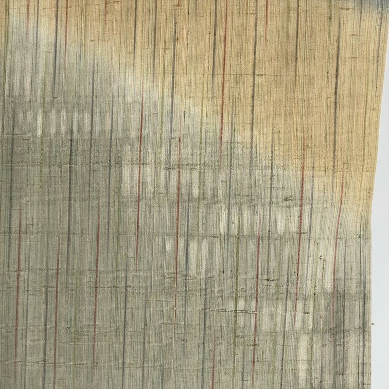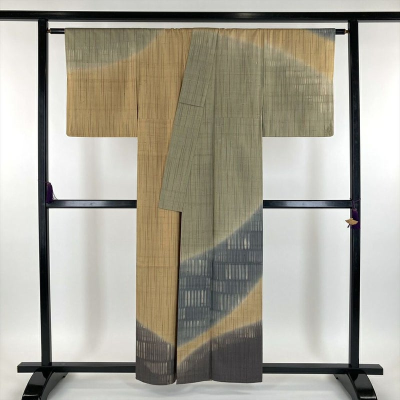 一ではなく、節があるのが特徴です。手触りはサラッとしていて張りがあり、シワになりにくく、単衣の着物に向いています。 染め:芥子色は、単なる黄色ではなく、奥行きのある複雑な色合いを持っています。光によって見え方が変わり、深みのある表情を見せてくれます。職人の手による、独創的で、美しく、流れるような「ぼかし染め」が見事です。