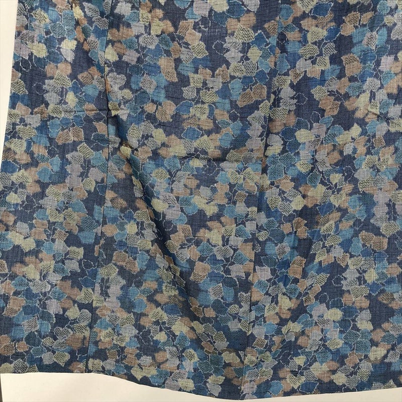 (中古) 紬 藍色 カジュアル 木の葉 単衣【身丈】144cm【裄丈】62.5cm